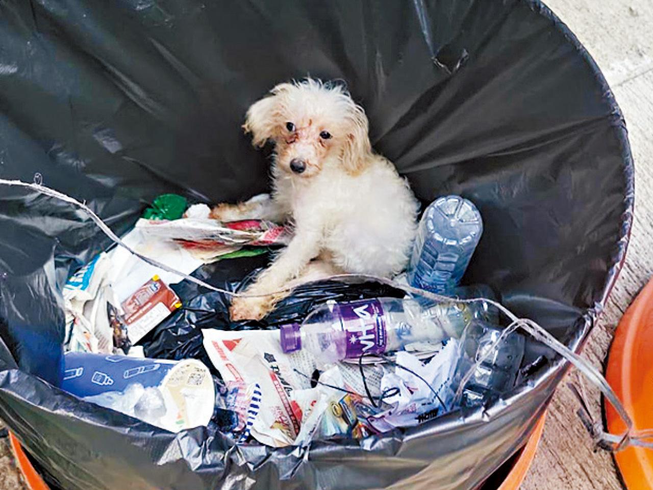 狗狗不是垃圾!一隻白色貴婦狗昨早被發現在公眾垃圾桶內,懷疑遭人遺棄。警方列作虐待動物案跟進。愛護動物協會已接走該犬隻,牠身上沒有晶片,將進一步跟進健康情況。