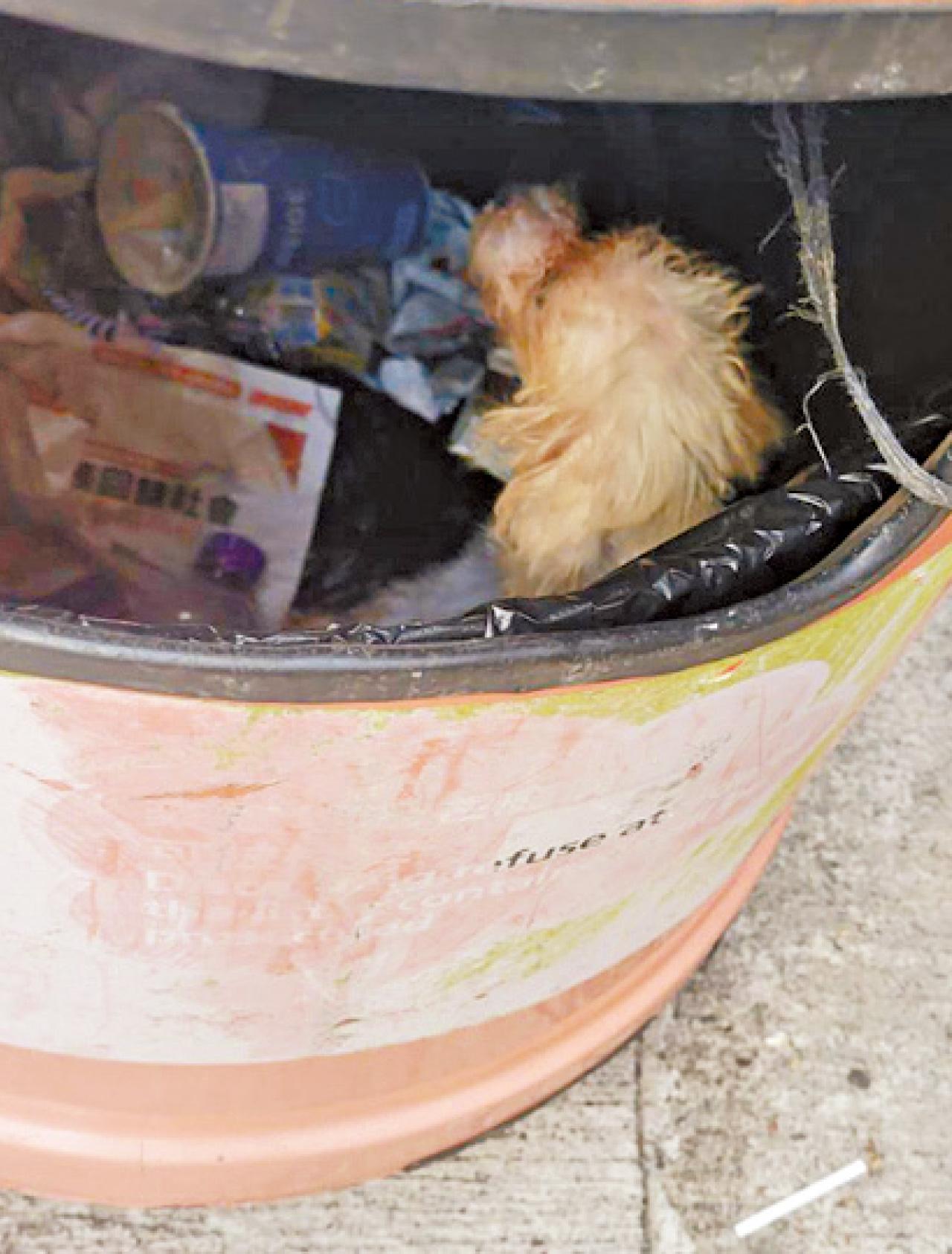 一隻白色貴婦狗被發現在垃圾桶內。(香港動物報圖片)