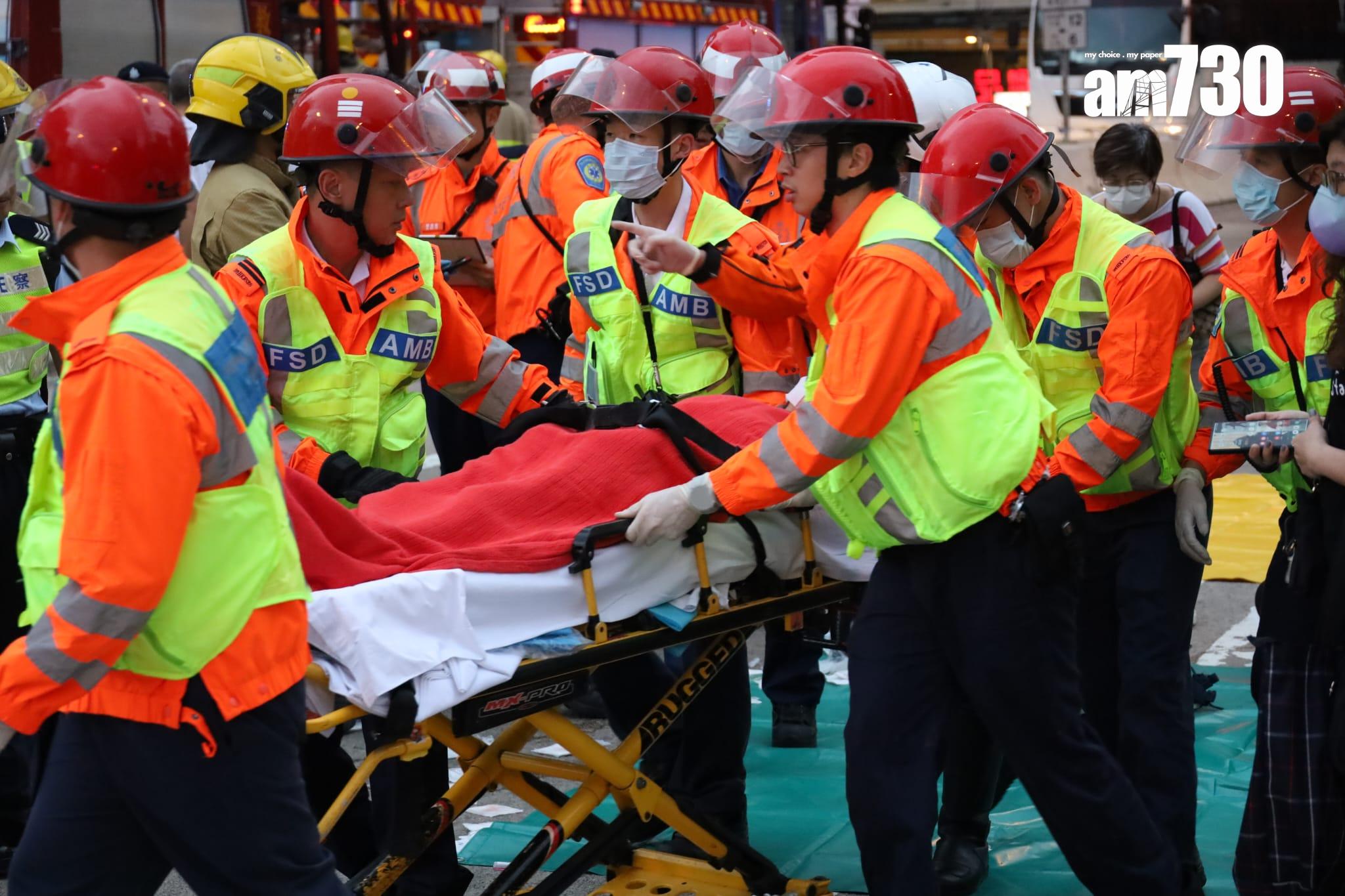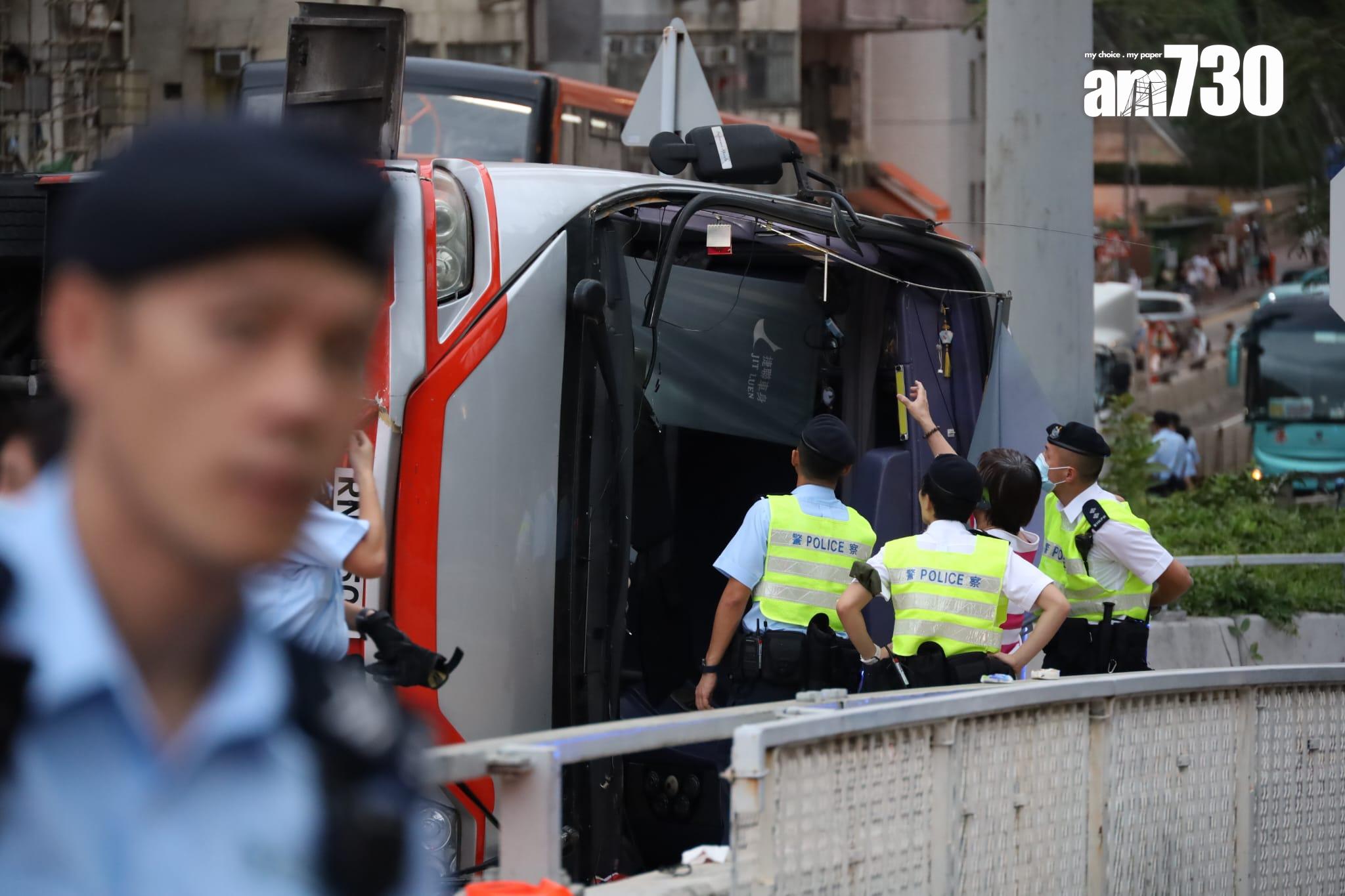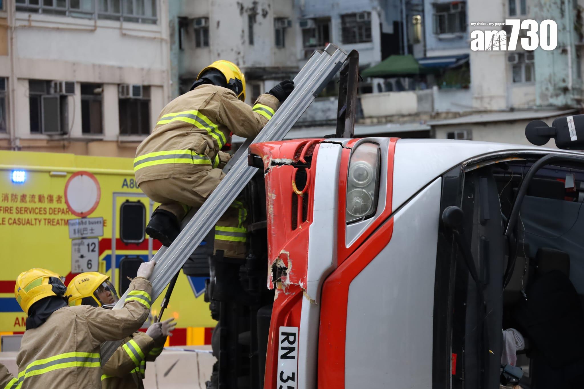荃灣德士古道天橋旅遊巴翻側至少23人傷。(鍾式明攝)