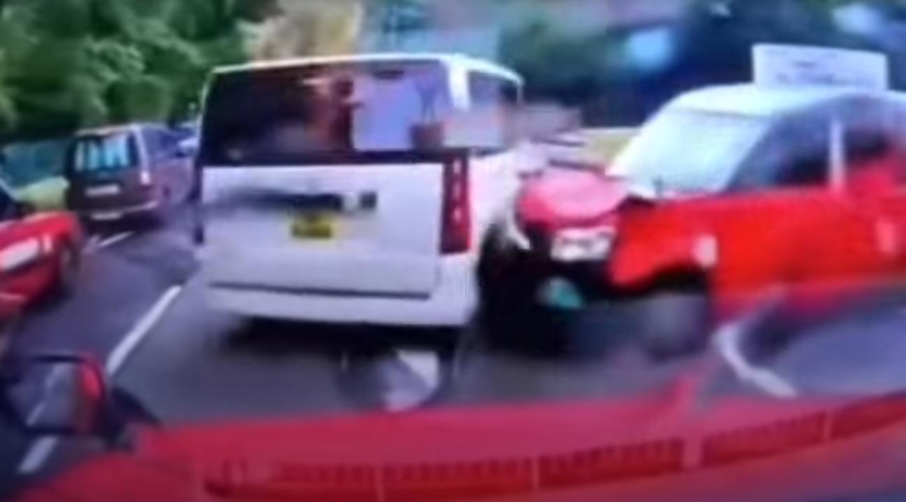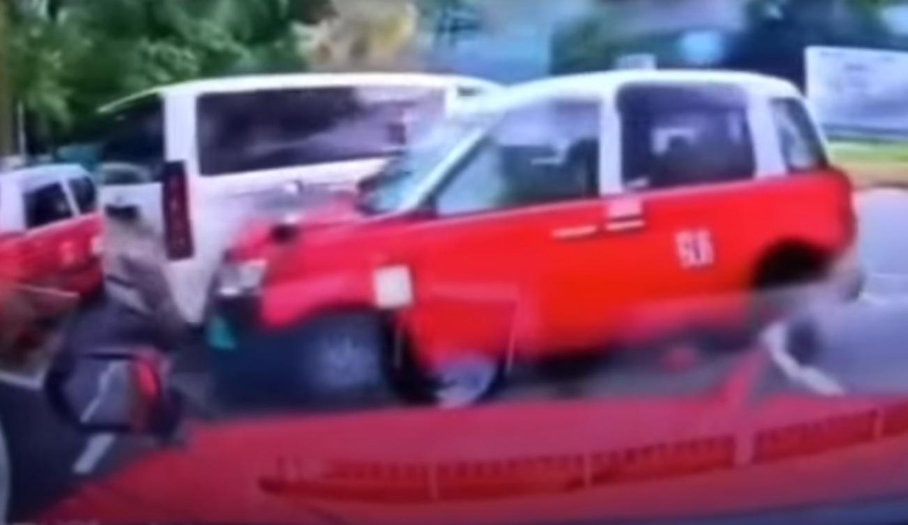 車Cam直擊|將軍澳的士司機揸車恰眼瞓 分心猛撼客貨車2人傷。(YouTube影片截圖)