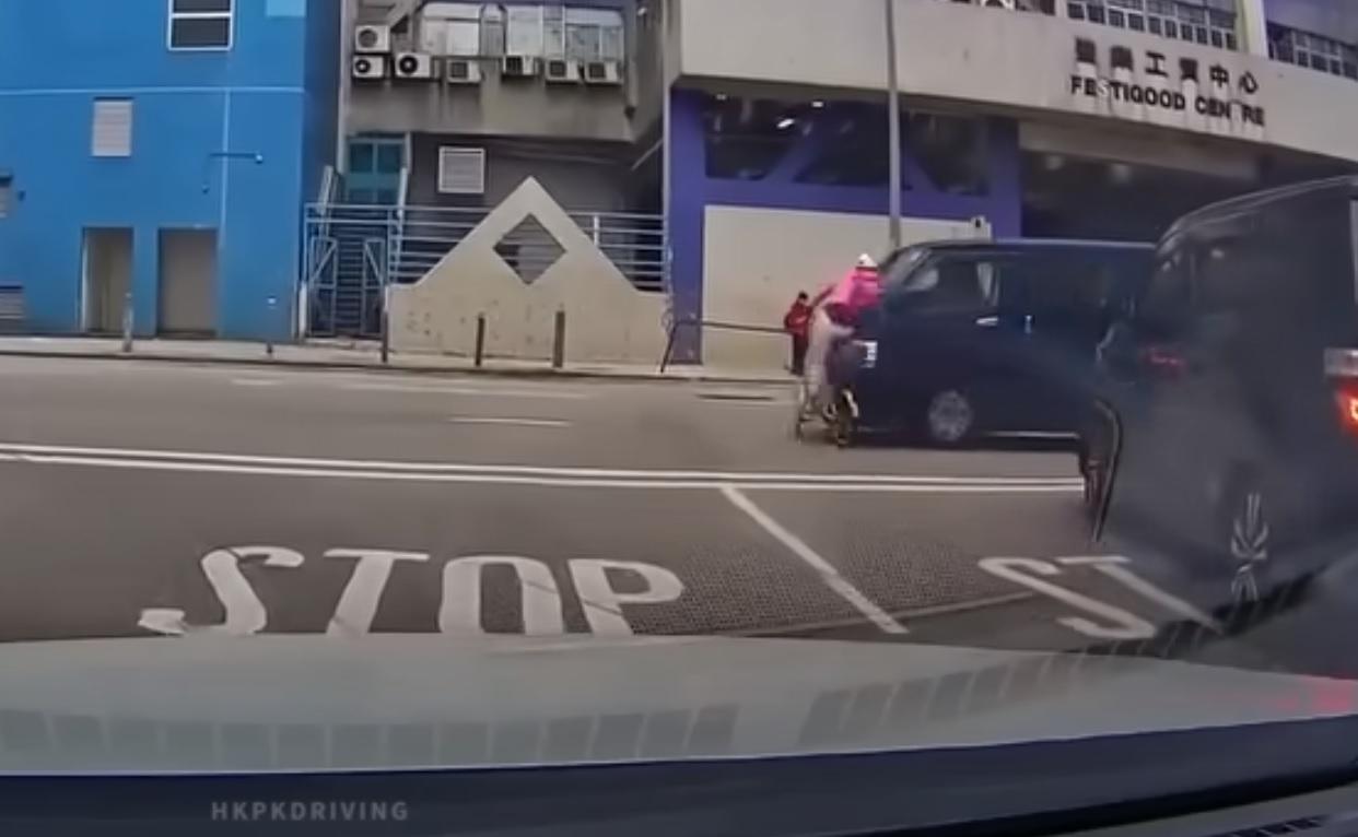 今日(14日)早上7時38分,一名身穿桃紅色外套及戴上白色鴨舌帽、年約50歲婦人,騎單車沿粉嶺安居街右線行駛,駛至安居街及樂業路交界時,遇到一輛客貨車在右線準備右轉,於是切線至客貨車左邊,企圖爬頭。當她踩出樂業路時,頭轉向左邊查看,疑見沒有車於是繼續踩,詎料頭轉回右方時,另一輛沿樂業路行駛的客貨車已經駛至,司機亦立即響號提醒,惟未及她回過神來,已經被客貨車迎頭撞至飛墮地上,單車上物品散落一地,其後她仍然清醒,能夠慢慢自行爬起。客貨車司機報警。