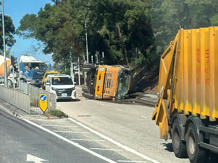 今日(14日)下午1時33分,一輛重型貨車沿青衣西路行駛,駛至近青華花園位置時失控「自炒」翻側,並出現漏油,一個5米鐵欄遭撞毀。警方和救援人員接報後趕至現場,男司機腰痛,清醒由救護員即場治理,其後毋須送院。警方正在調查事故成因。
