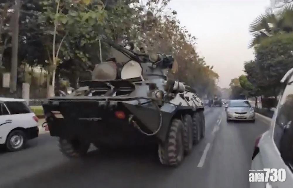 緬甸局勢持續緊張,繼周日大批市民上街抗議軍方發動政變,扣押的國務資政昂山素姬後,緬甸在凌晨時分,陸續有民眾報稱當地4間主要網絡供應商無法連線,懷疑是軍方再次切斷電訊。據了解,在北部克欽邦,多座發電廠都有士兵部署,與相信軍方會切斷供電的示威者爆發衝突。網上有片段顯示,克欽邦首府密支那有保安部隊人員,開槍驅散示威者,惟未知是發射橡膠子彈抑或實彈。另外,密支那最大城市仰光等地都有裝甲車進駐,報道指是緬甸軍方發動政變以來,首次出現同類軍方的大規模部署。