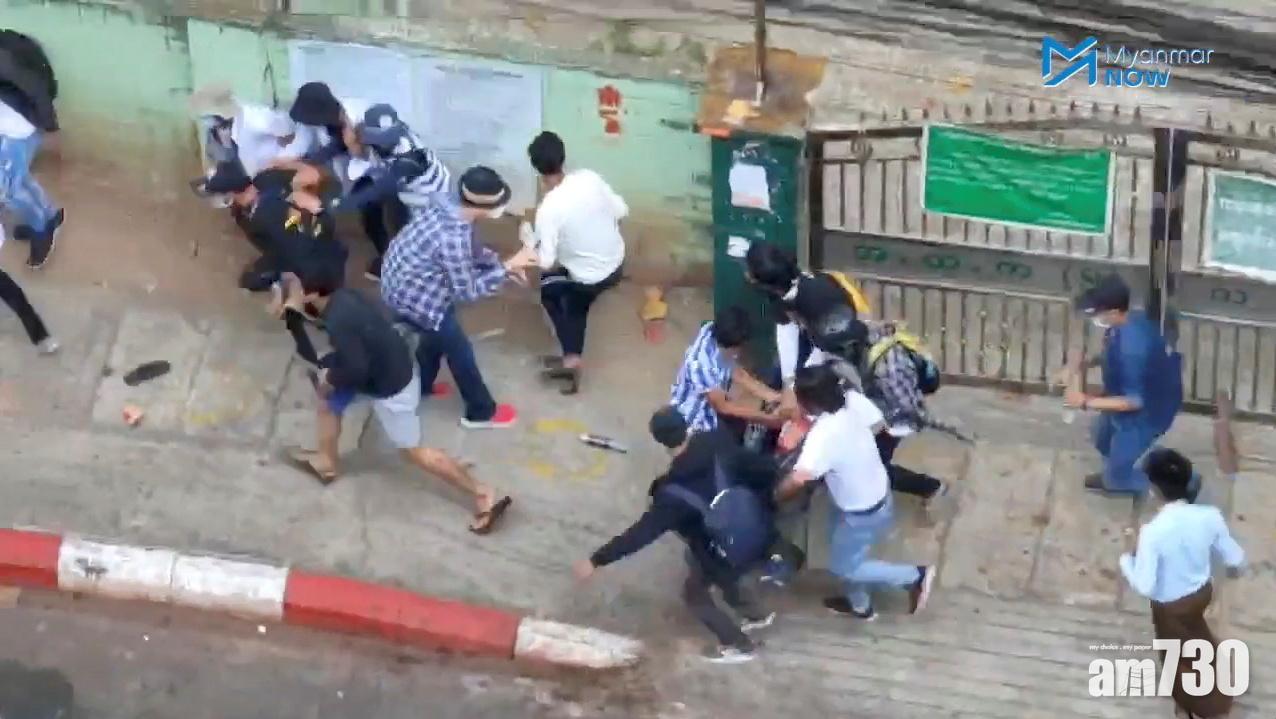 仰光防暴警察清晨即採取行動,美聯社報道,數百民眾及醫科生在市中心Hledan Center十字路口附近遊行期間,防暴警向人群發射催淚彈和水炮驅散,有人不適,即場用水沖洗眼睛。從社交網流傳的影片和照片可見,示威者四散,警察推進,有示威者設路障試圖阻擋警察逼近。美聯社報道,仰光街頭傳來多響槍聲,地上留下彈売,懷疑防暴警射實彈鎮壓,他們亦向群眾投擲煙霧彈。