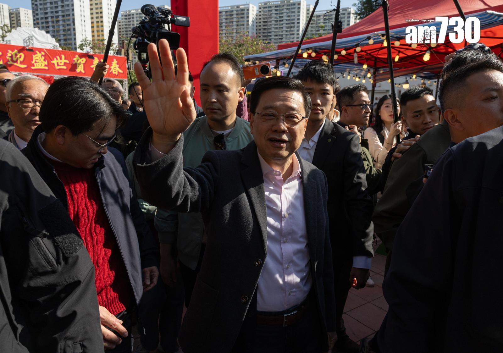 今日是年廿九,行政長官李家超下午到屯門年宵市場巡視,與市民及檔主傾談,購買了劍蘭,指寓意奮勇向前。