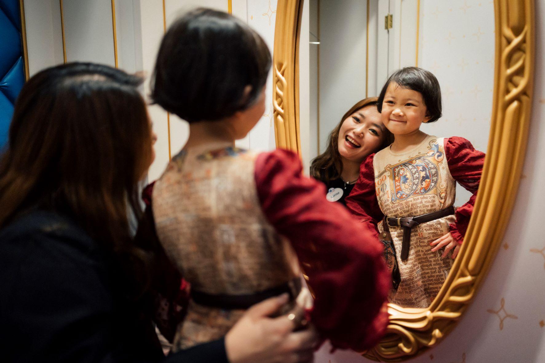 為了實現她的願望,香港迪士尼娛樂事務團隊精心設計了一個演出前的特別時刻,並讓她真正參與演出。懿晨穿上由度假區服裝部設計的專屬服裝,在魔法化妝廳進行了華麗變身,化上精緻的妝容及頭髮造型,全情投入舞台演員的體驗。