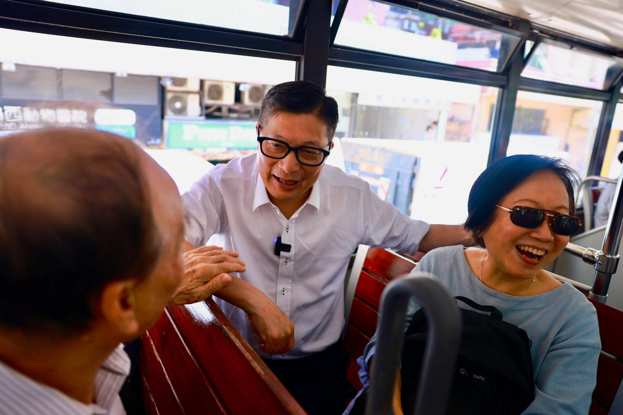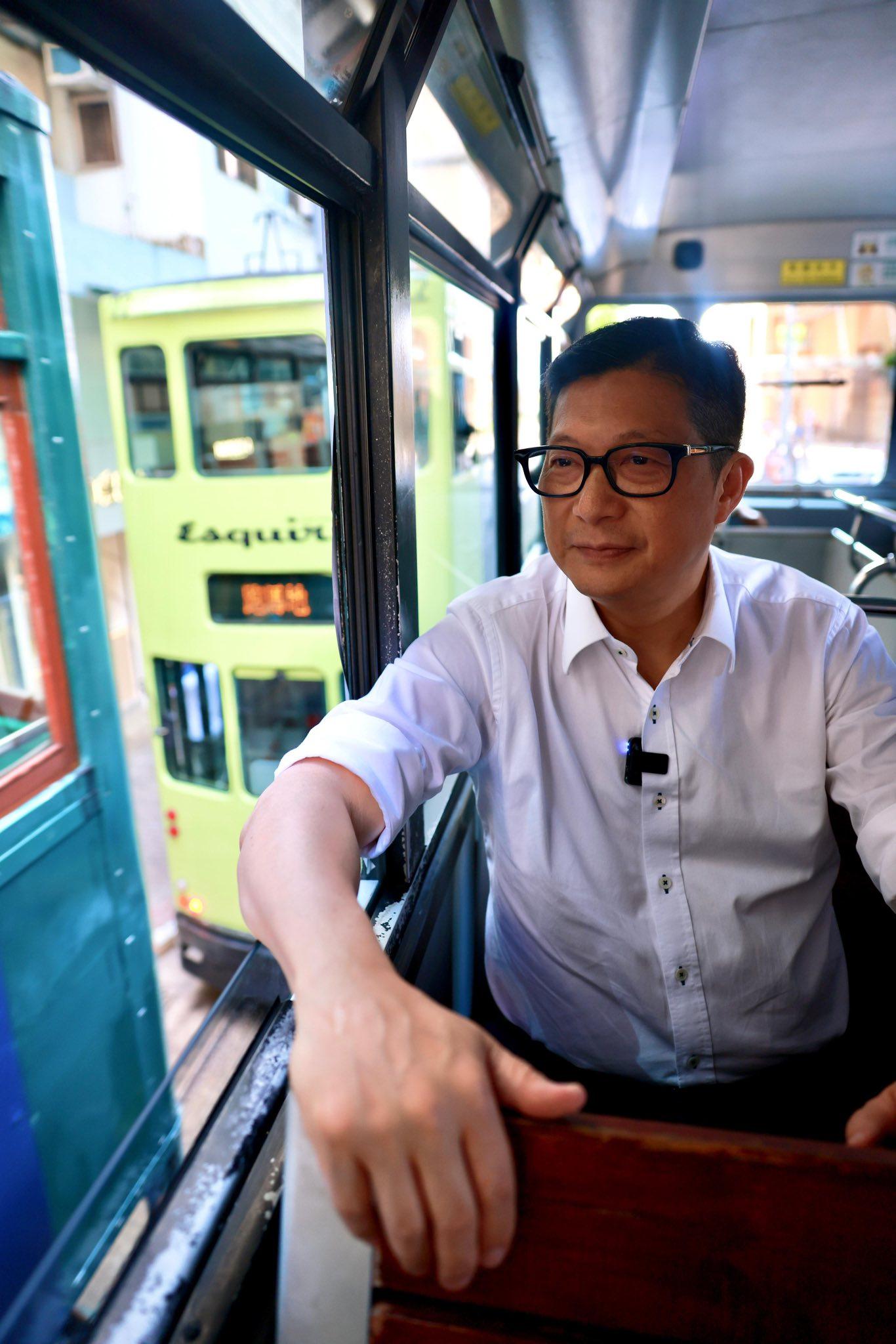 鄧炳強話,茶餐廳側邊就係佢當年每日搭巴士返學嘅車站,真係好懷念。飯後一行人就行去搭免費電車,「沿途睇住熟悉嘅街景,邊同市民傾下偈,邊感受兒時情懷。」佢話,喺國慶日繁忙嘅行程中,一餐午飯,一趟電車遊,真係十分療癒。最後亦不忘祝市民國慶快樂。