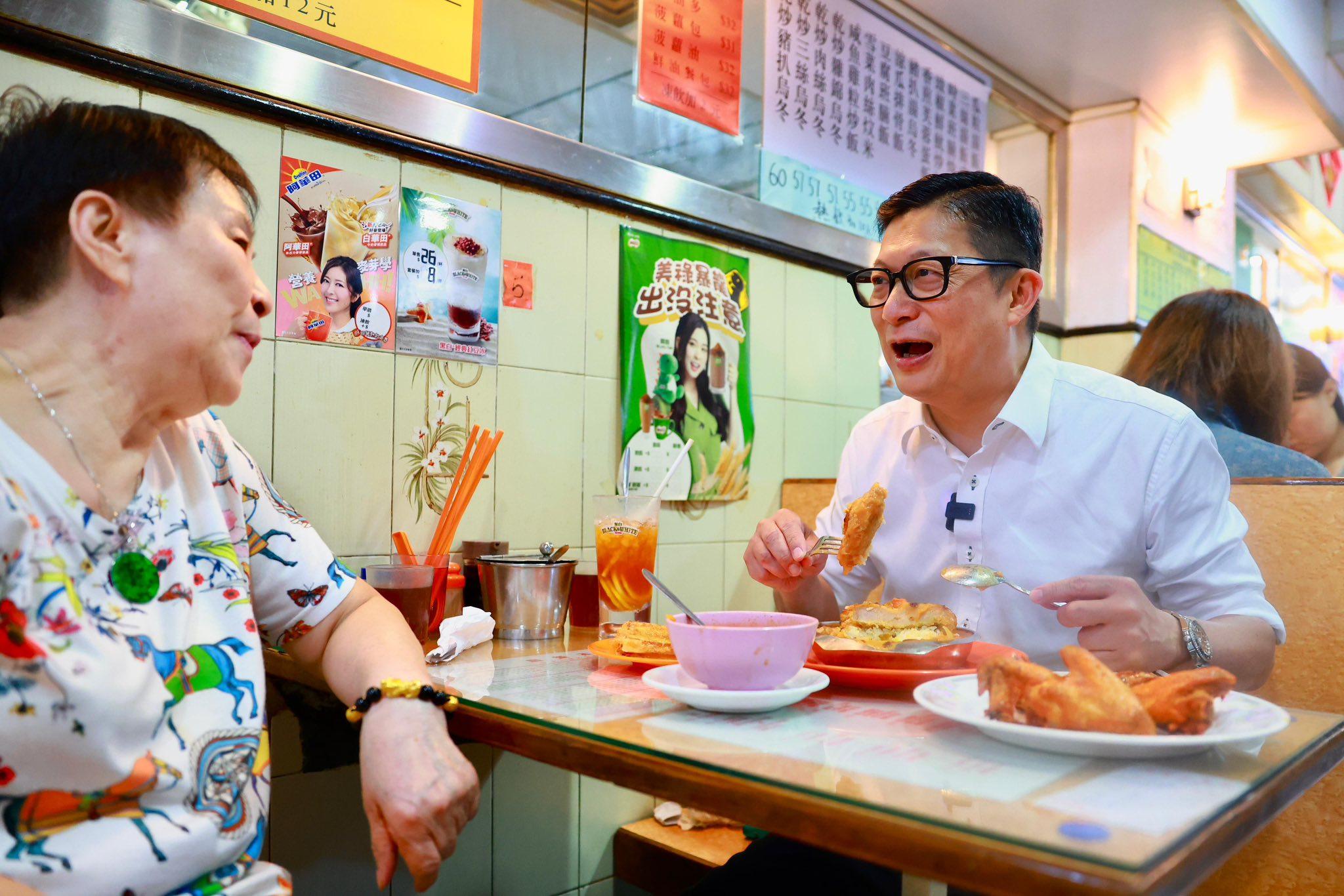 今日(1日)是國慶日,唔少食肆都有提供折扣優惠,一眾司局長亦趁機品嚐美食。保安局長鄧炳強今日就請同事齊齊去西環一間有60年歷史嘅茶餐廳食晏。原來鄧炳強兒時住西環,而咁啱呢間茶餐廳今日有優惠,所以就特意到場,仲食咗凍檸茶、焗豬扒飯、炸雞翼茶餐同西多。佢仲話好滿足。