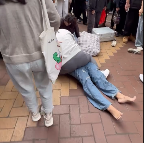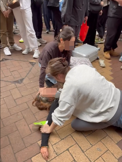 網上流傳發時的影片,從中可見多名途人圍觀下,兩名女子合力將外籍女子壓在地上,她鞋子散落一旁、不斷掙扎;而在她的身上,就有一名白衣的女子跨坐著,另有一名女子則壓制其頭部。期間兩名女子高聲斥責:「太離譜啦、太過份啦!」白衣女子更怒斥:「你嚟香港偷嘢,仲打我呀!」影片至此結束。