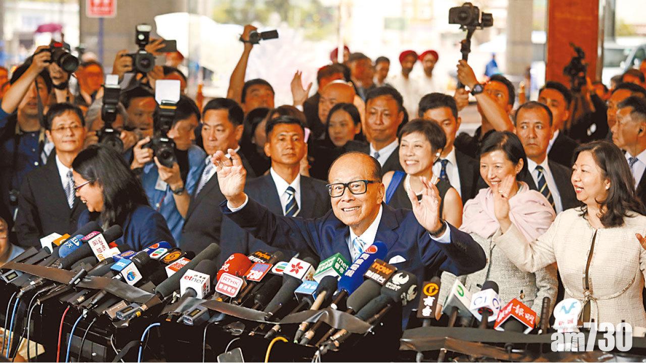 李嘉誠向傳媒揮手告別。(林俊源攝)