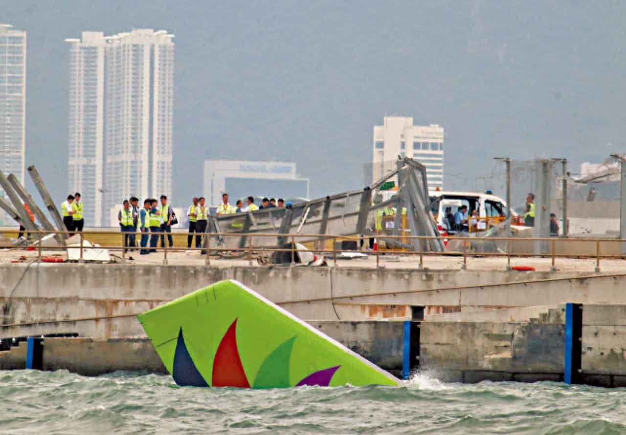赤鱲角香港國際機場昨晨發生啟用以來首宗飛機衝落海意外。一架由阿聯酋杜拜來港的無載貨貨機,在北跑道降落後疑失控衝出跑道墮海,期間將一輛機場保安公司巡邏車撞落海,車上兩人最終不治,4名機組人員則無大礙送院治理。民航處表示,指揮塔事前有給予正確降落指示,期間未有接獲機師求助,機管局就指被撞的巡邏車,當時在距離跑道一段安全距離的正常位置執勤。有專家形容意外罕見,要等待分析俗稱「黑盒」的飛行紀錄儀數據才能了解事故成因。攝影:鍾式明