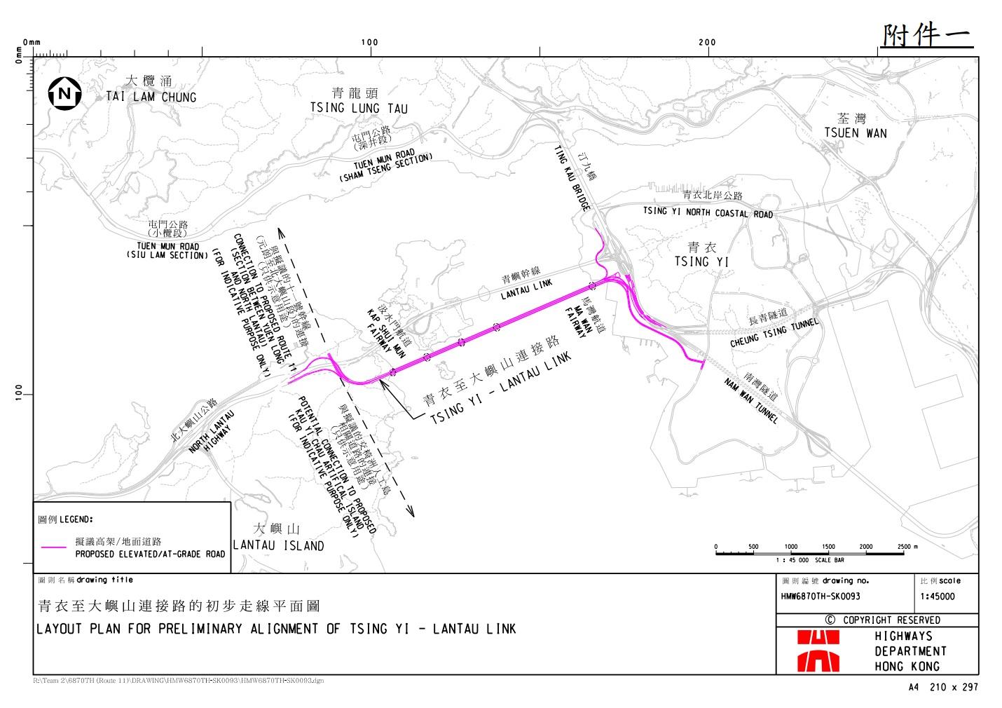 政府近年致力發展新界西北部,為應付洪水橋、厦村和元朗南等發展所產生的交通需求,政府擬在現有青嶼幹線的南面,建造約5.2公里長的青衣至大嶼山連接路,包括分別橫跨馬灣航道及汲水門航道的兩座跨海大橋、青衣連接處和北大嶼山交匯處,目標2033年或以前通車。