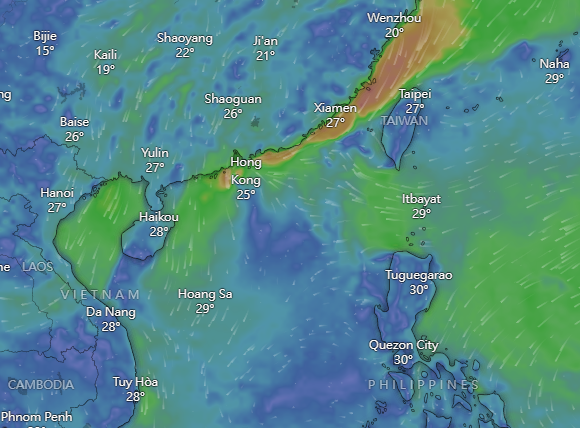 在過去一小時,大老山錄得的最高持續風速為每小時49公里,最高陣風超過每小時61公里。