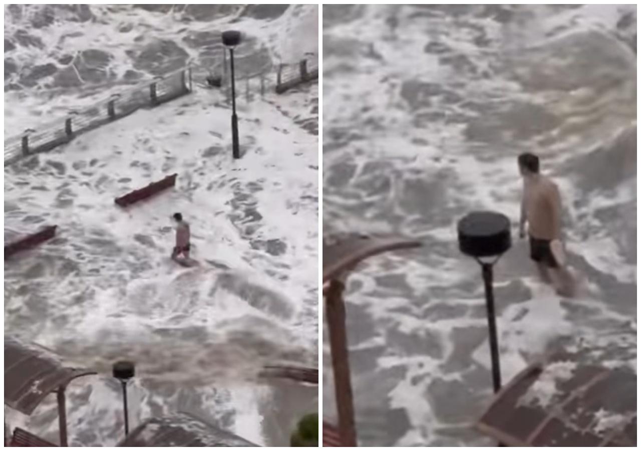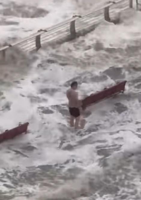 颱風樺加沙襲港,十號颶風信號現正生效。本港多處風勢明顯加強,本港東部沿岸的水位今早8時普遍已上升至海圖基準面3米以上,將軍澳海濱長廊清晨可見水位升接近長廊高度,甚至湧起約7米高海浪,海浪不住沖擊上行人路。該處有居民拍到對一名男子在海濱長廊觀景台,站立於水中,並迎浪撲面,徘徊一段時間,幸最終安全離開。