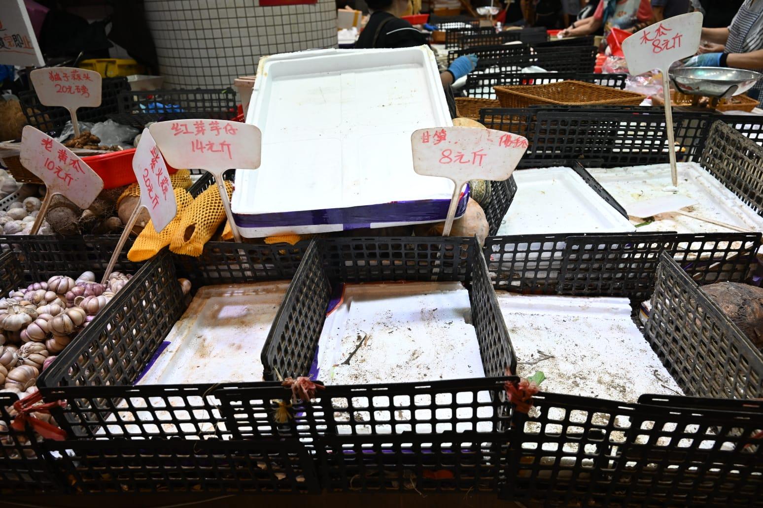 颱風蘇拉|隨著強颱風蘇拉逼近本港,天文台將於明日凌晨2時至5時改掛八號風球,不少市民趕到街市及超市購買糧食。據本報記者到場視察,多個街市的檔口已被掃清貨物;超市貨架亦空空如也,有市民撲空,未能購得食物空手而回。