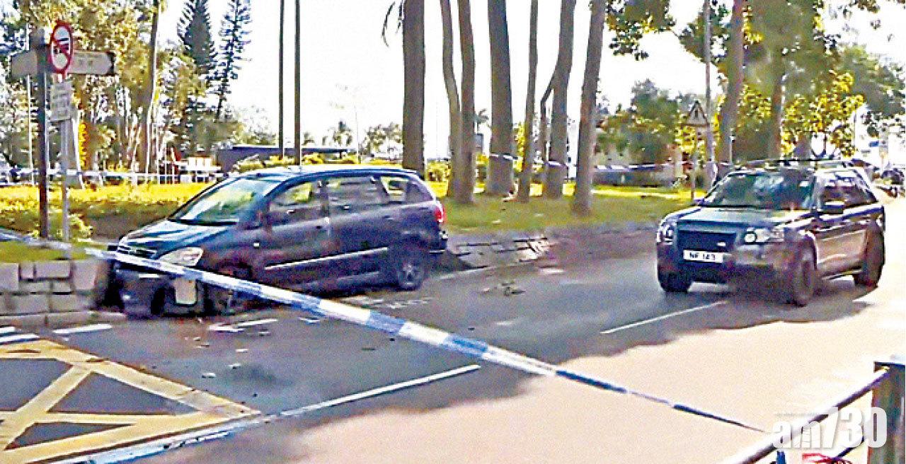 案發後,事主四驅車(右)與賊車(左)停在現場。