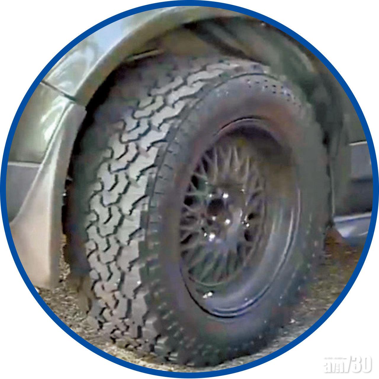 事發於昨凌晨4時51分,事主姓鄭(54歲),據指在西貢開設一餅店,失款原用作支薪之用。事主案發時到西貢福民路取車,駕走四驅車時發現右邊尾轆異常,下車查看,發現車軨上5粒螺絲「失蹤」(圓圖),期間兩男一女由一輛掛中港牌七人車下車,並持刀趨前指嚇,之後劫走事主車內9萬元離開。