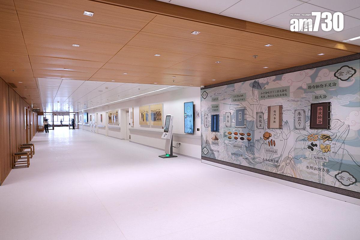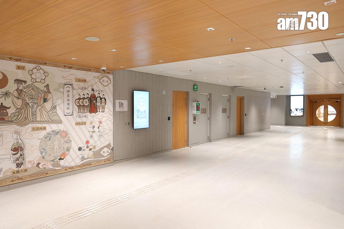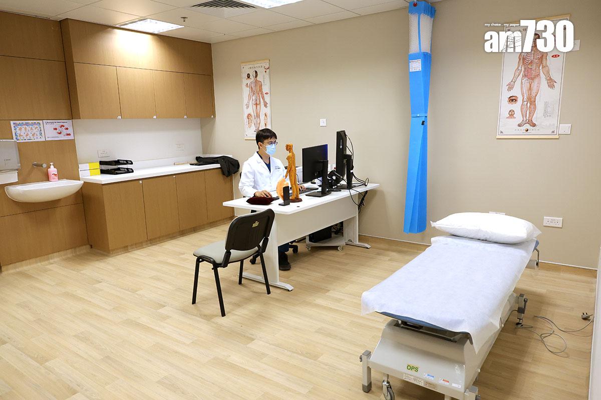 座落於將軍澳百勝角的香港中醫醫院11層高,提供政府資助全科服務的全科診所位於地下,設有10間空間較大的診症室暨教學室,除方便家屬陪同病人就診,亦同時兼備教學功能。診所同時有5間針灸及3間艾灸治療室,其中艾灸治療室安裝有抽煙系統,能排走治療期間產生的煙、不會導致煙霧瀰漫,該等房間亦可用作其他治療如針灸。中醫醫院副行政總監(中醫)張振海指,全科診所的電子系統已經駁通,病人報到後就會出現在門診排隊和醫師叫號系統,接受診症後亦可隨即到護士站預約即日使用治療室。