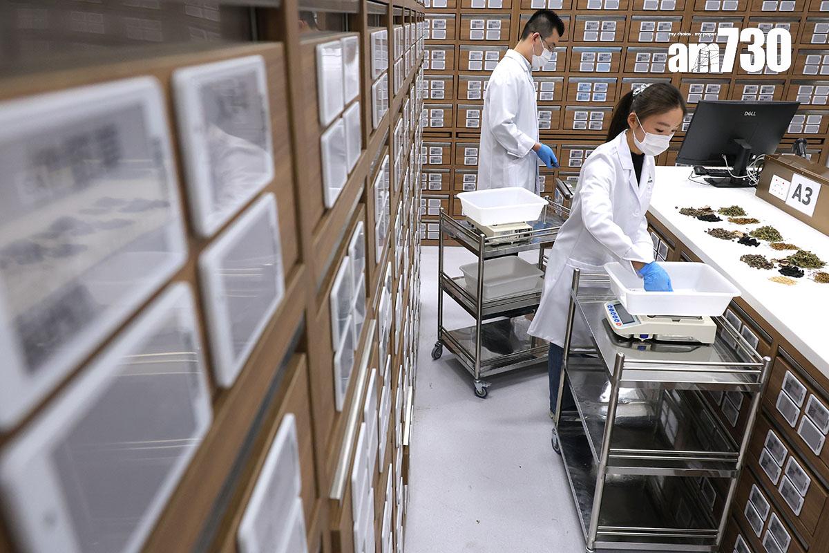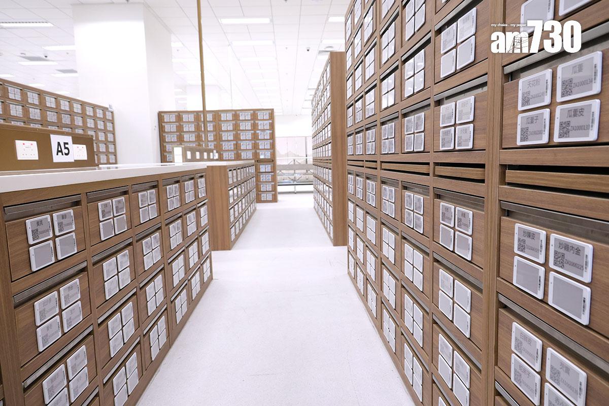 香港中醫醫院以中醫為主、設中西醫協作服務模式,位於地下的藥房亦分為中藥房及西藥房,合共有約600種草藥,以配合南方和北方中醫師需求,除飲片還有顆粒劑。百子櫃每格外都有電子墨水屏,展示藥名和二維碼、批次編號,方便中藥師處方時作紀錄。張振海表示,中藥師和藥劑師會分別處方中藥和西藥,雙方在過程會考慮兩種藥的相互作用,例如效用是否「一加一大於二」、會否出現副作用問題等。