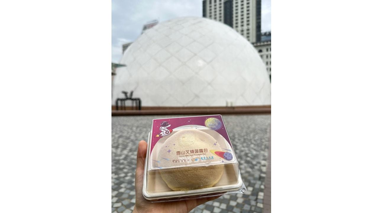 美心西餅與香港太空館聯乘推出限量版「雪山叉燒菠蘿包」,包裝融入獨特的太空設計元素。