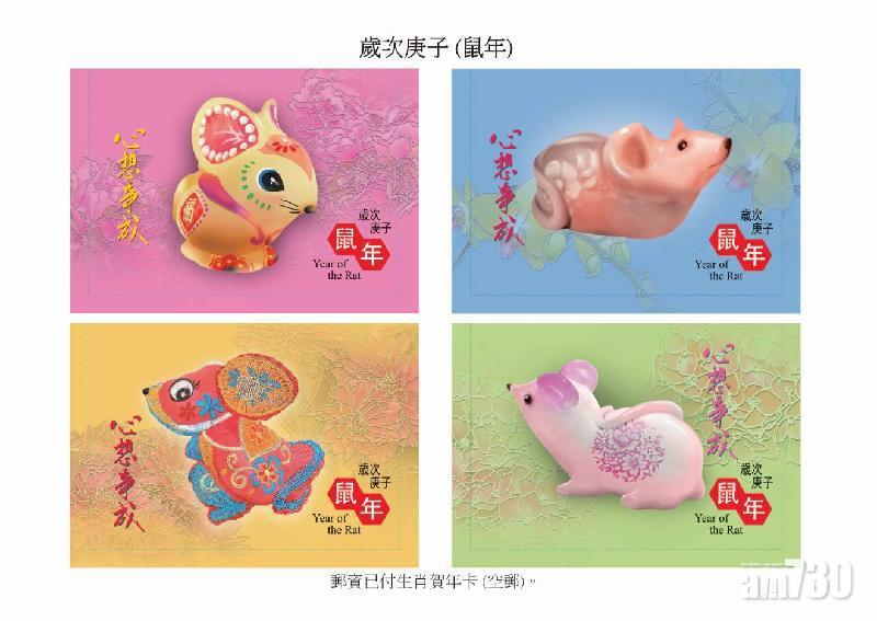 「歲次庚子(鼠年)」郵資已付的生肖賀年卡(空郵)。(香港郵政)