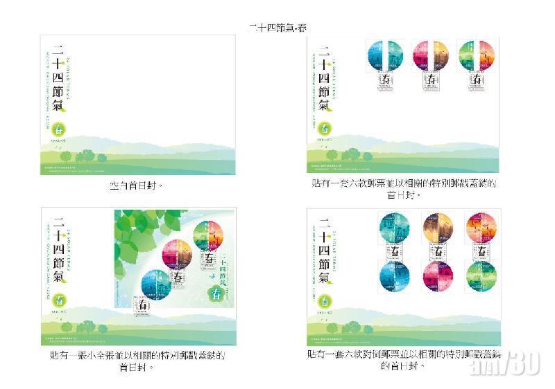 「二十四節氣--春」郵票、小全張和特別郵戳。(香港郵政)