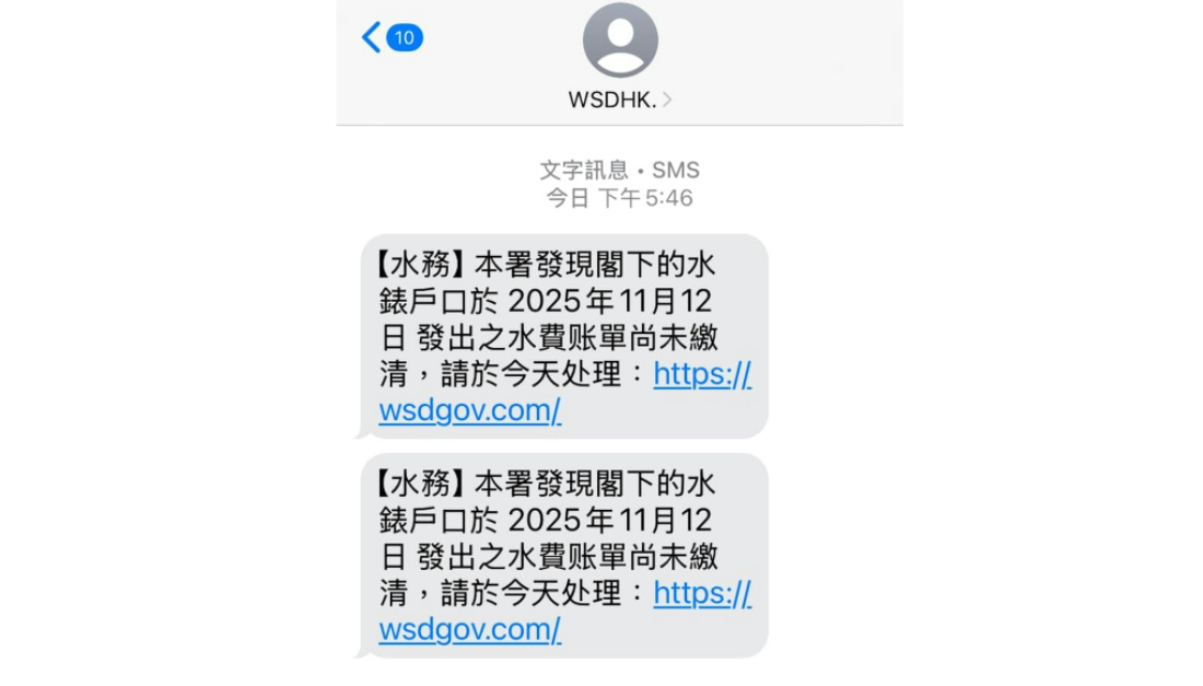 騙案|騙徒冒水務署發詐騙短訊 署方籲提高警覺