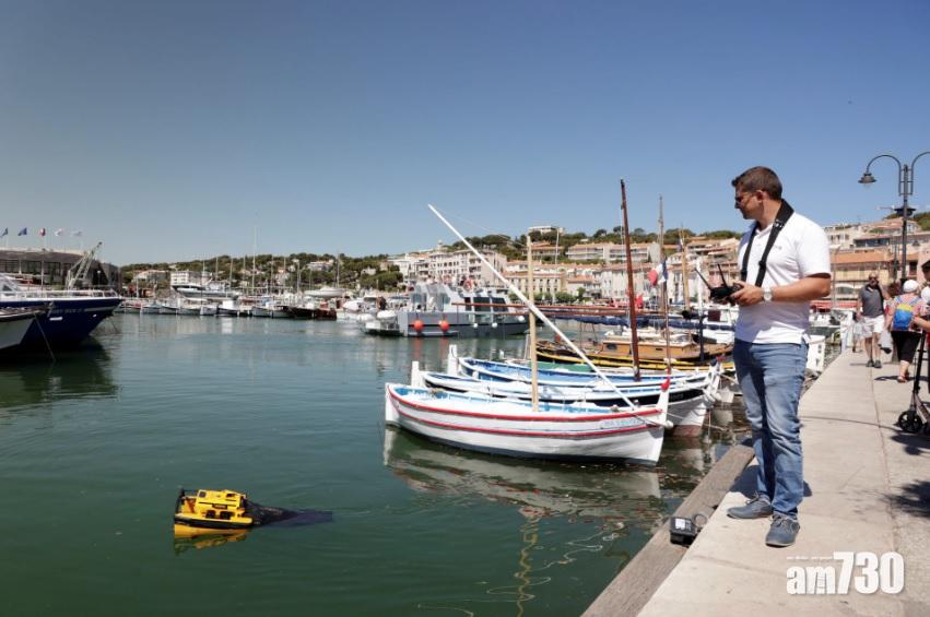 法國南部城市卡西斯(Cassis)蔚藍的海岸風光如畫,是熱門旅遊勝地,但遊客往往會看到膠袋、亂丟的飲品瓶,甚至戴過的口罩在海面漂浮,確是大煞風景。當地近日找到解決方法,就是出動一艘鮮黃色的小型遙控電動船在水面巡邏,一看到垃圾,就將其吸入船體後方的網子裡。