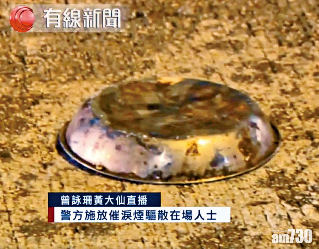 有市民以蒸魚碟蓋住催淚彈。(有線電視截圖)