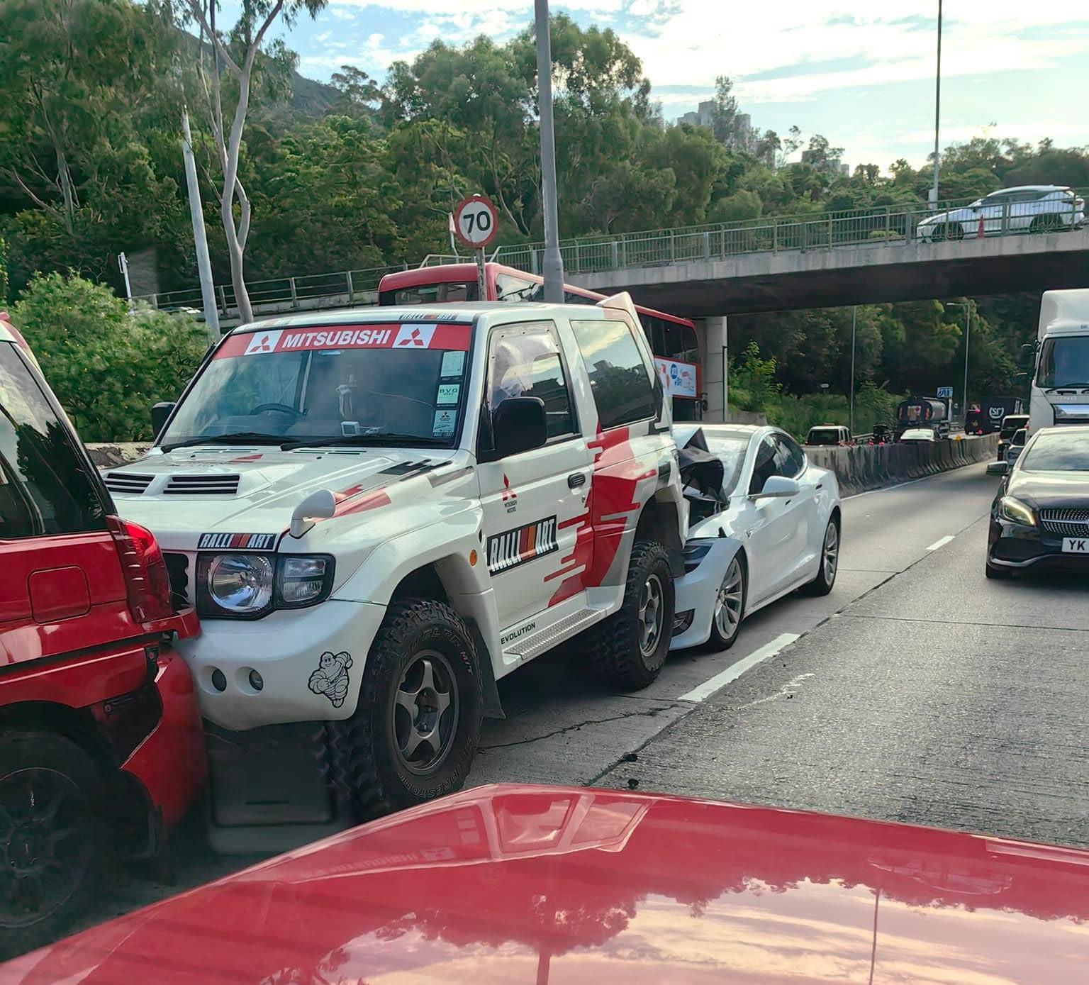 龍翔道發生3車連環相撞車禍。今日(16日)早上7時47分,一輛私家車沿龍翔道往荃灣方向行駛,駛至天馬苑時,懷疑收掣不及,直撼向前方吉普車車尾,車頭冚撞至摺起;吉普車亦撞向前方的士車尾。