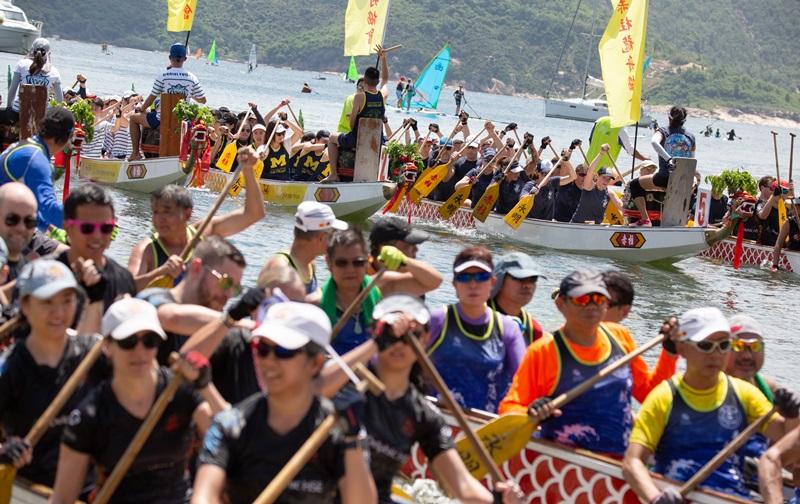 而在赤柱正灘,早上亦有龍舟活動,取代停辦2年的龍舟賽,有30多隊龍舟隊伍參與,有市民表示,疫情以來首次看到龍舟再度下水感到開心,特意帶子女到現場參觀和感受氣氛。主辦單位指,今日並非正式賽事,而是巡遊祭神和練習活動,希望延續「祭龍祈福」的傳統,祈求香港平安,盡快由疫情中恢復過來,至於正式龍舟錦標賽將會在10月復辦。