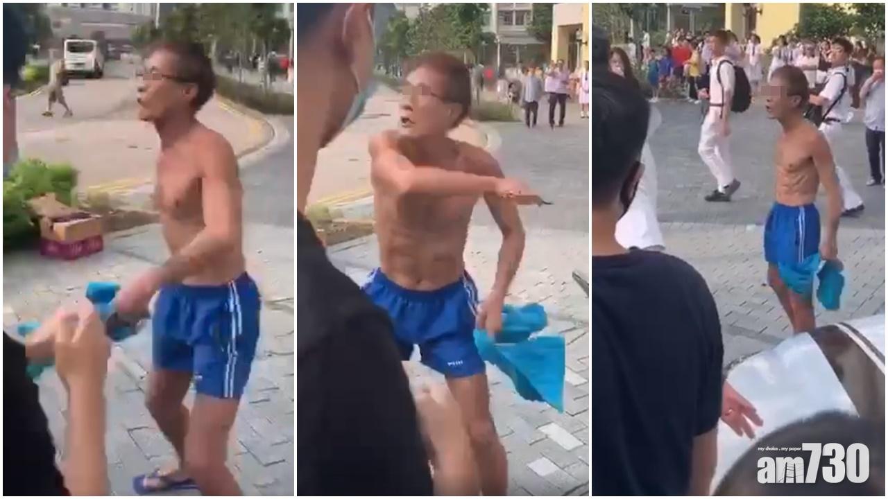 案情指,昨晨有近80名學生在文理書院外進行和平示威活動,期間有人高呼口號。住在附近的被告到場指摘學生聲量過大,期間疑情緒激動,手持鎅刀揮舞並指罵學生,混亂中傷及一名女教師,教師手指需縫6針。被告事後逃離現場,惟被附近的閉路電視拍到,昨晚被警方在啟晴邨寓所拘捕。