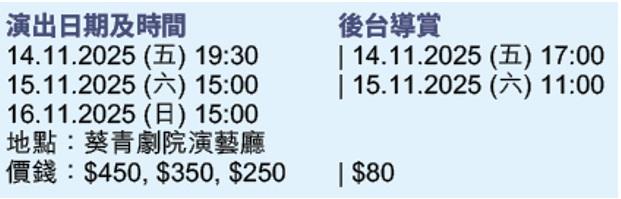 此外,還有4套本地節目,包括香港聖樂團聖樂巨匠韓德爾誕辰340周年:神曲經典 《彌賽亞》;R&T (Rhythm & Tempo)《花木蘭:合格女子養成記》;偶友街作《來回16000公里: 小企鵝要回家》,以及Free-To-Play無語言面具劇場《塑膠島上的怪誕家族》,門票同樣已公開發售,想與親朋好友一起歡度冬日佳節,立即了解詳情並購票。