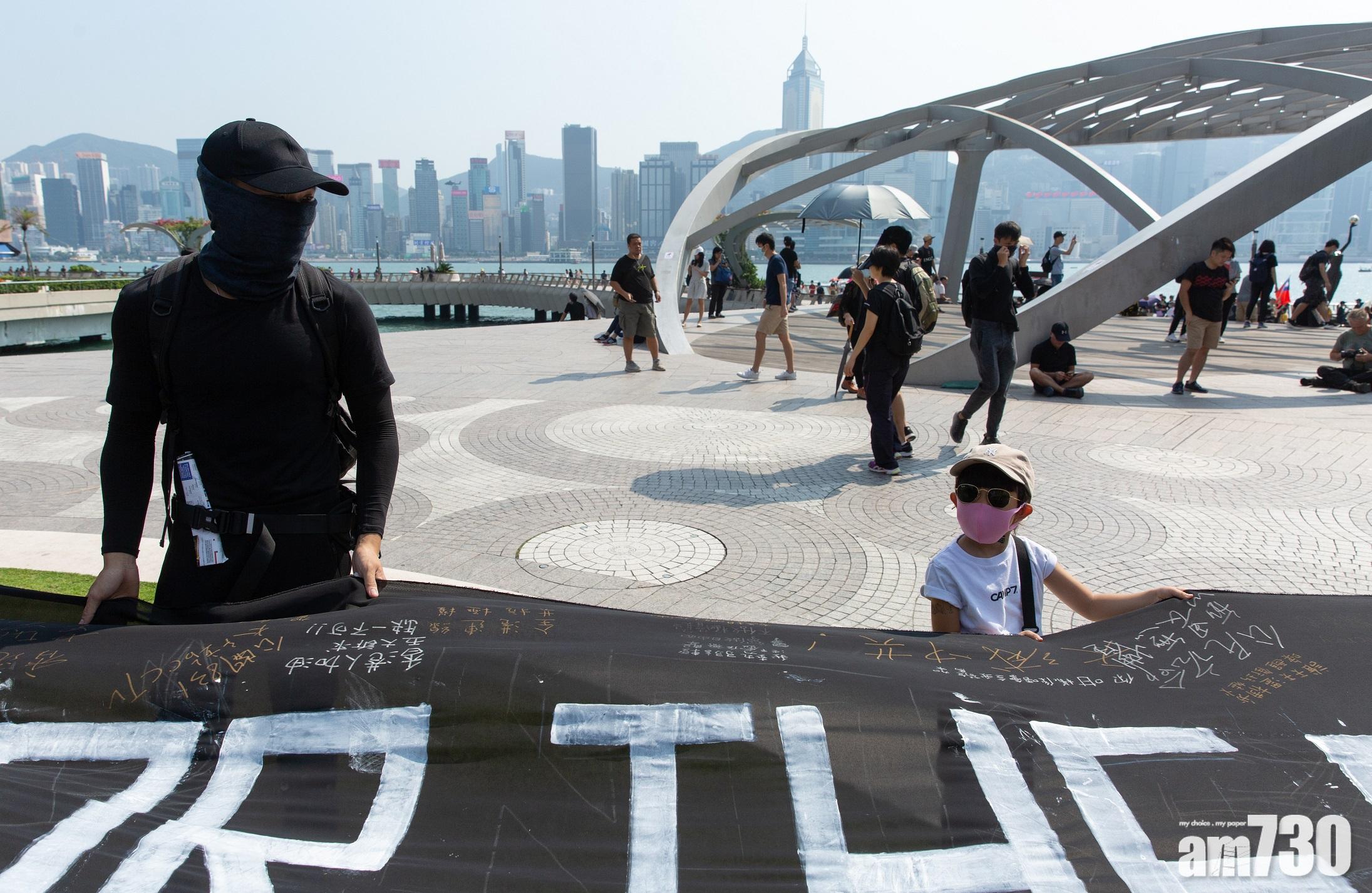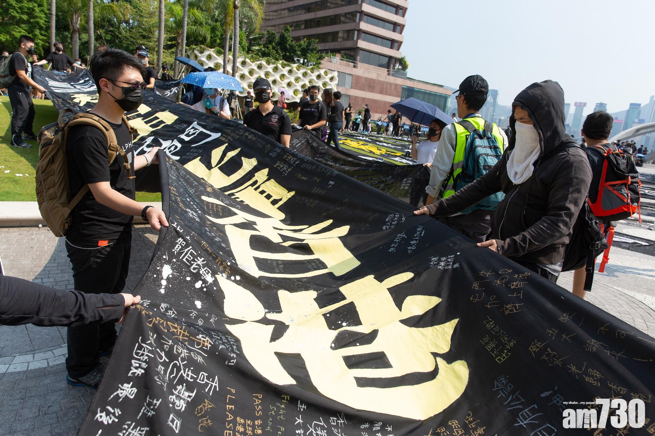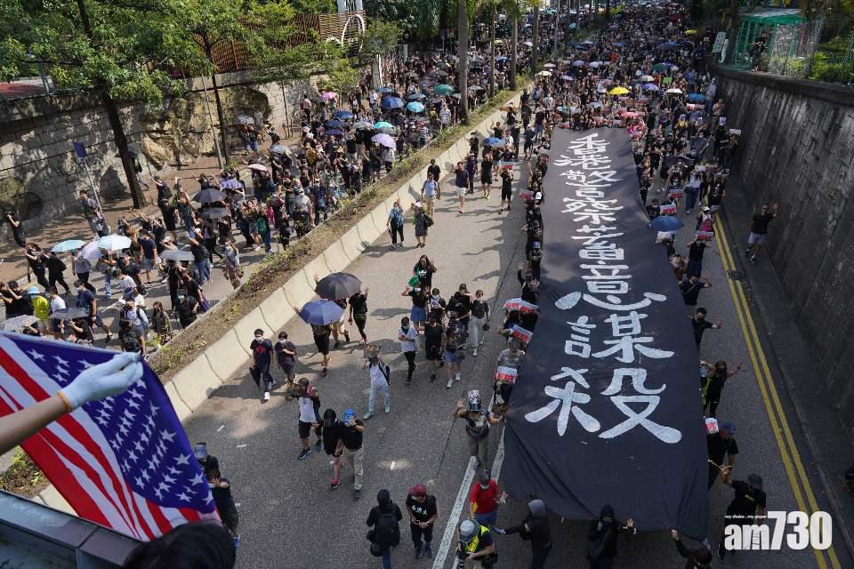 另外,部分遊行人士走到尖沙咀警署外聚集,有人塗污警署水牌,尖沙咀警署報案室服務暫停,警方籲市民如遇緊急事故,請致電999。警方在警署內展示藍旗並一度向聚集人士舉起防暴槍。