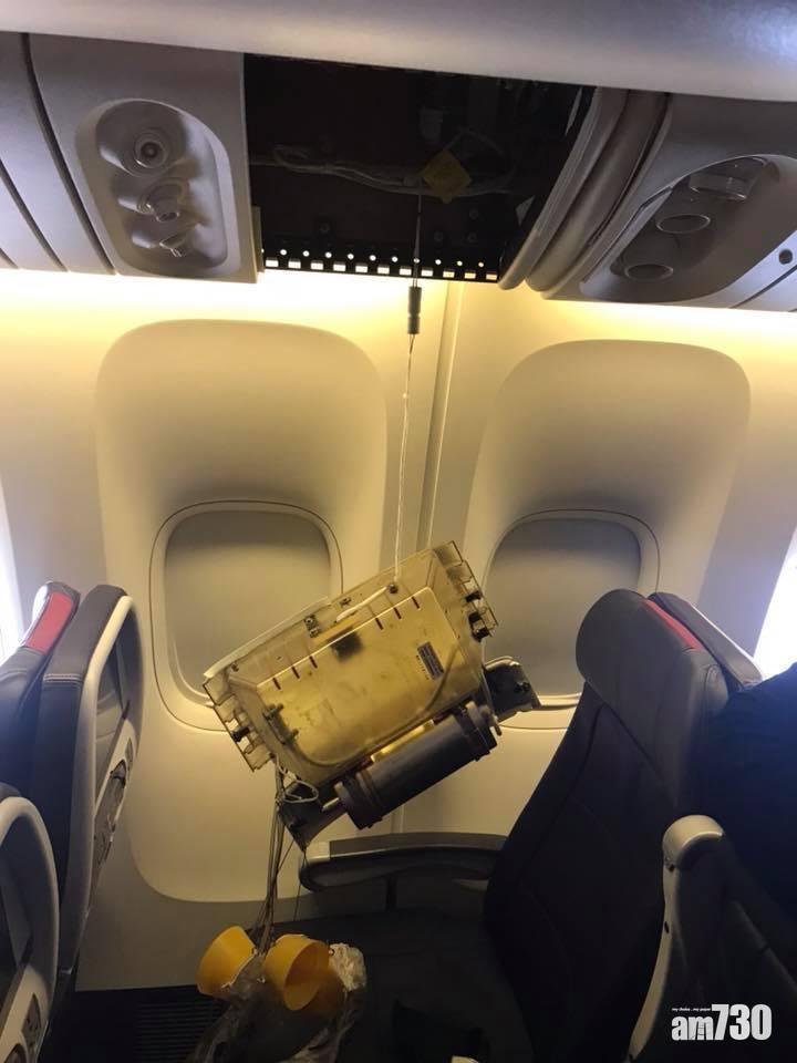 美國航空一班從香港飛往美國達拉斯客機,降落後有窗口位上方的氧氣罩,竟連同整塊天花板掉下,砸中33歲母親扎諾內(Jennifer Zanone)的1歲兒子,撞傷其頭部,扎諾內不滿航空公司處理手法,在社交網站公開事件。