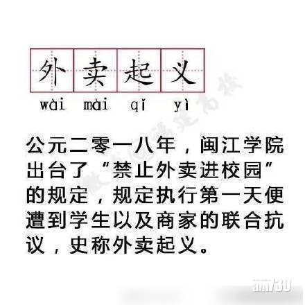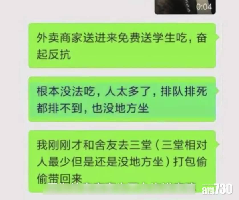 福建福州一間大學「閩江學院」多名學生昨日爆料,指校方昨起實行新規定,全面禁止學生叫外賣,「每個門都有保安在堵,不允許送進來,如果打包拿回去宿舍樓的話,打掃阿姨看見也會給你錄下來」,無奈之下,學生昨中午都到學校飯堂用膳,惟飯堂爆滿,大量學生耗費長時間排隊卻「搶不到飯菜」,就算買到亦沒地方坐下來吃,而部分外賣商家為抵制校方的「霸道條款」,在飯堂門口免費派外賣給學生,結果被警方帶走。