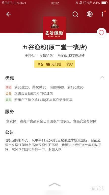 有外賣店在外賣平台公告老闆因事件被捕。(互聯網)