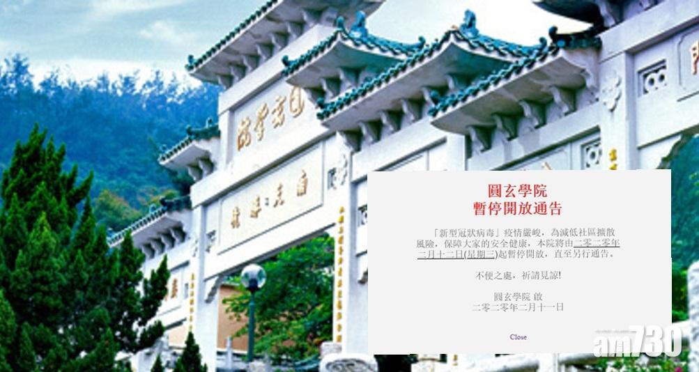 返回 本地 出版:2020-Feb-11 07:05 更新:2020-Feb-11 07:05 【武漢肺炎】圓玄學院明起關閉防疫情 分享: (通告為圓玄學院網頁截圖) 武漢肺炎疫情在本港有蔓延跡象,特首林鄭月娥更呼籲企業或娛樂場所盡可能減少營業,以防止疫情社區爆發。圓玄學院今日表示,因應武漢肺炎疫情嚴峻,為減低在病毒社區擴散風險,決定明日起暫停開放,直至另行通告為止。 ADVERTISEMENT 立即更新 /下載AM730手機APP 體驗升級功能