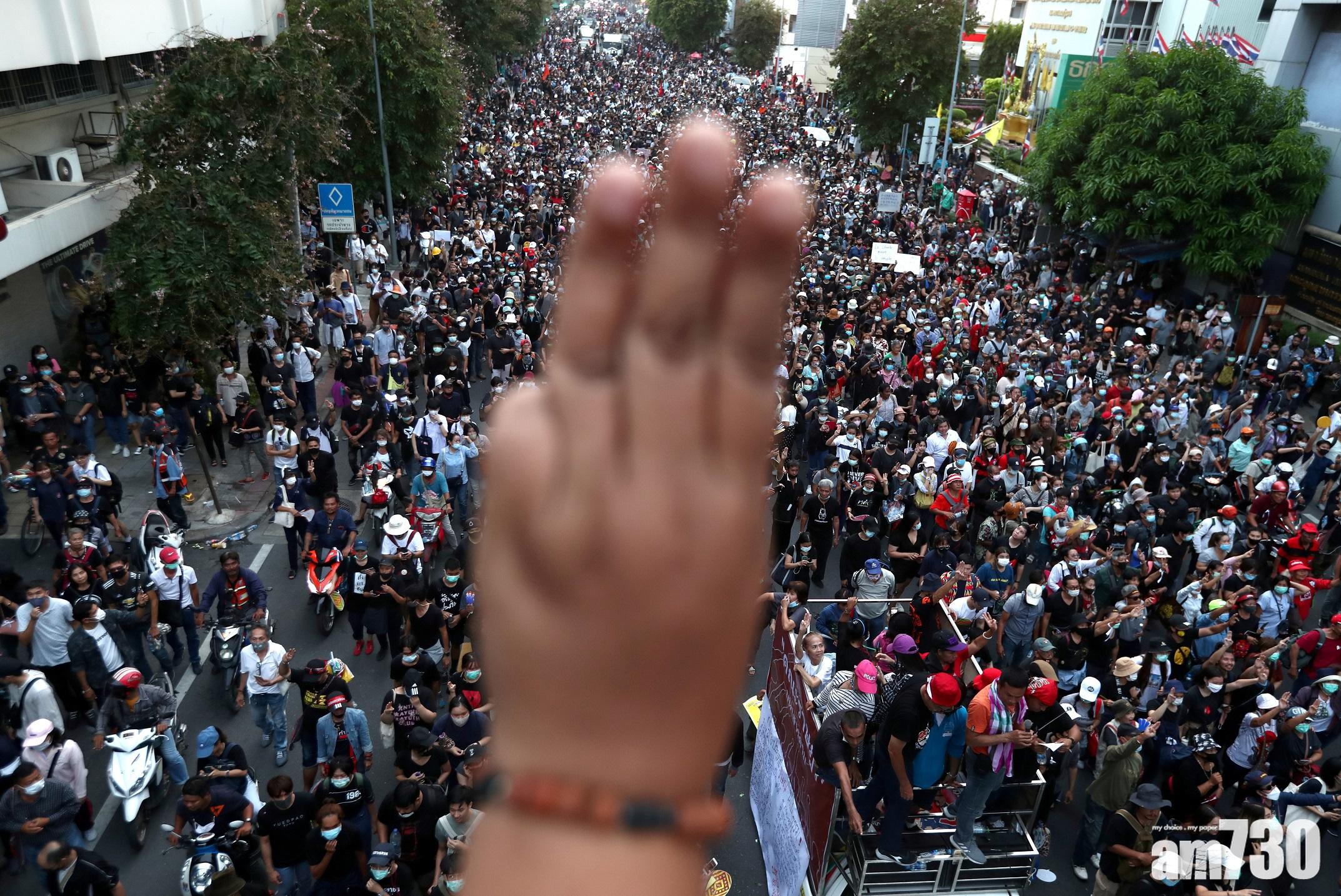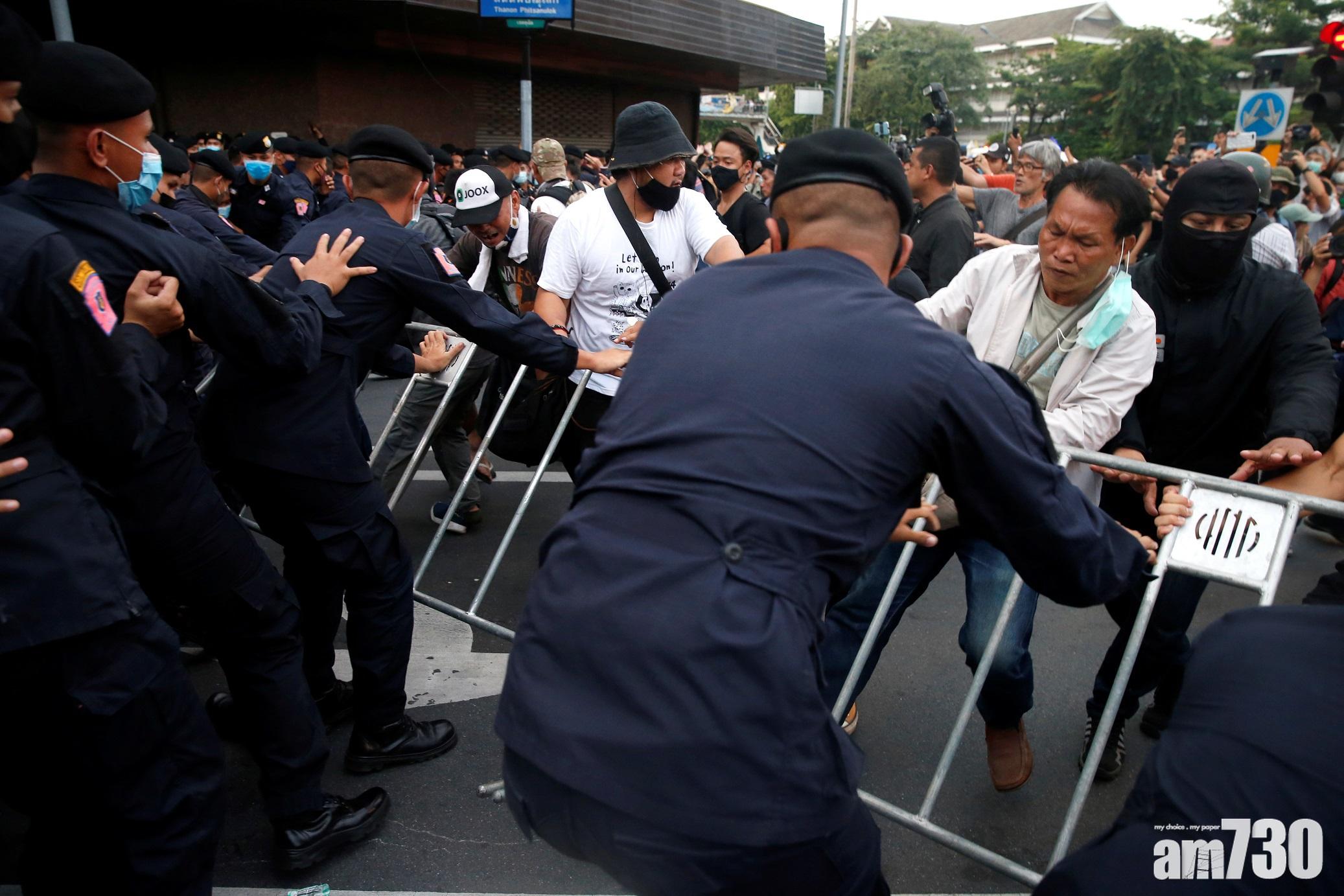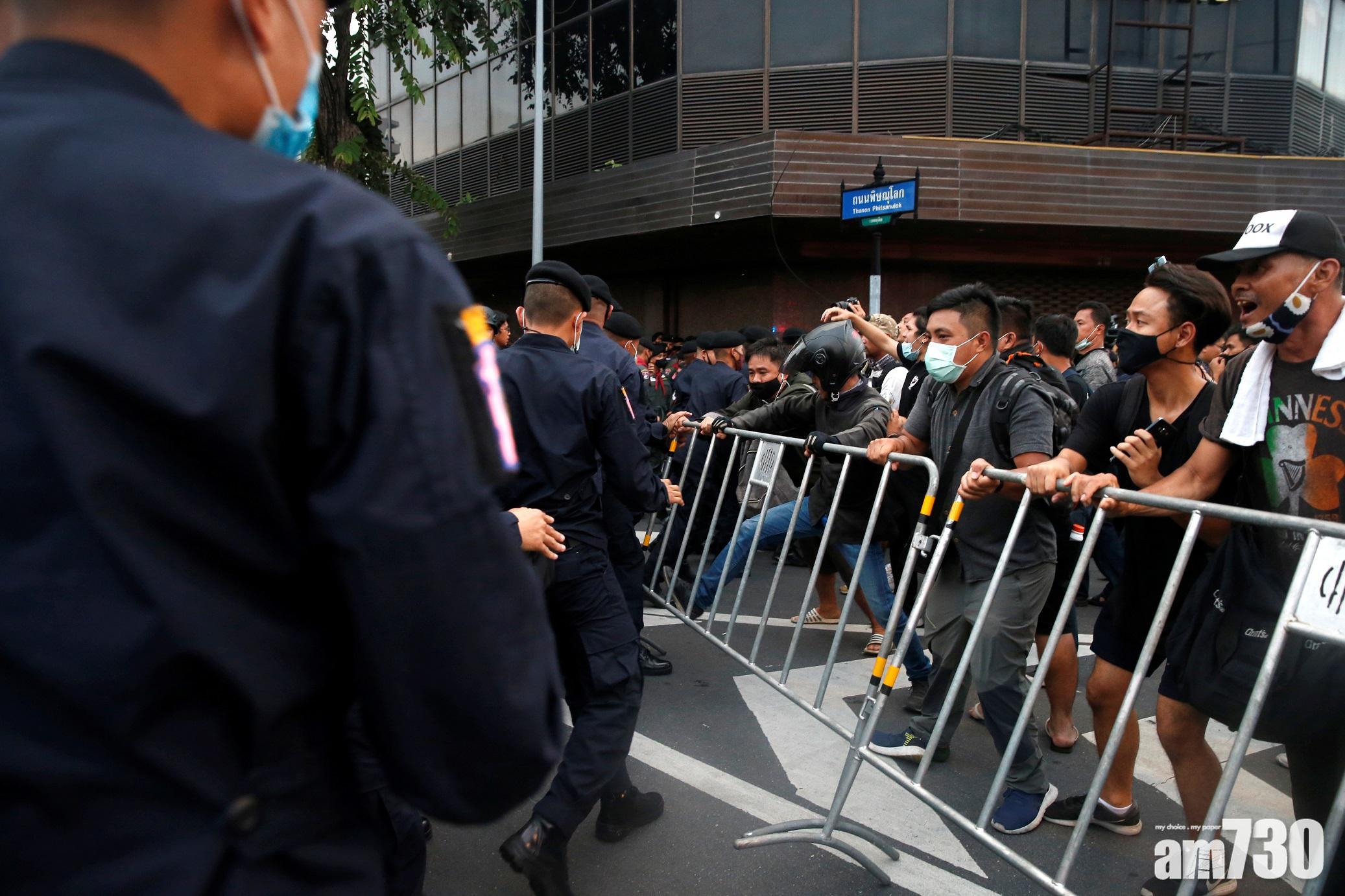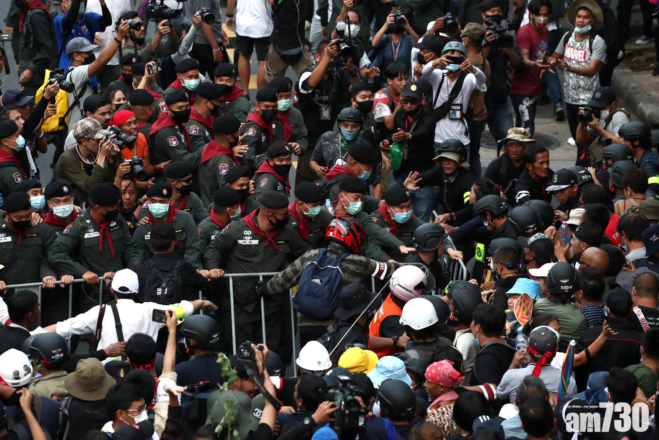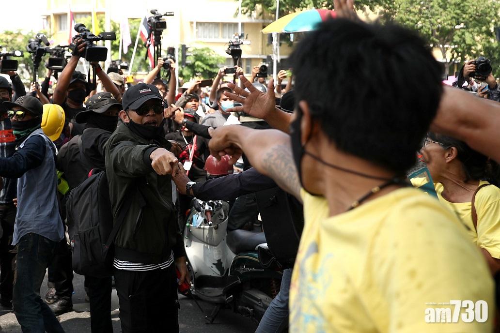 返回 本地 出版:2020-Oct-14 14:50 更新:2020-Oct-14 14:50 【泰國示威】曼谷萬人遊行 示威者與王室支持者爆衝突 (有片) 分享: 泰國反政府示威持續,曼谷周三有最少一萬名示威者,欲遊行至總理辦公室,要求總理巴育下台,途中一度與穿著黃色衫的王室支持者爆發衝突,互相指罵推撞,並投擲水樽等雜物,有人受傷。警員築起人鏈隔開雙方,並要求後退。 ADVERTISEMENT