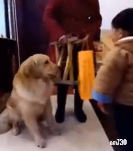 狗狗是人類最忠誠朋友,不時有窩心表現。內地有網民帖文「奶奶從老家來看孫子,剛一進門金毛的表現瞬間暖哭了……」上載的短片可見,婆婆剛入屋,孫子在大門附近迎接祖母,而小朋友旁則有一隻金毛尋回犬,婆婆正擁抱孫子時,金毛轉頭走向客廳,並叼了一張矮摺椅給婆婆坐。