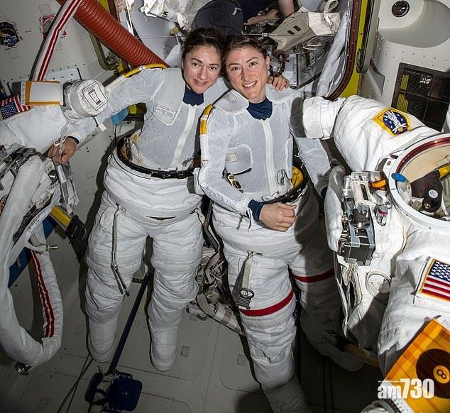 女太空人科克(右)及邁爾(左)。(互聯網)