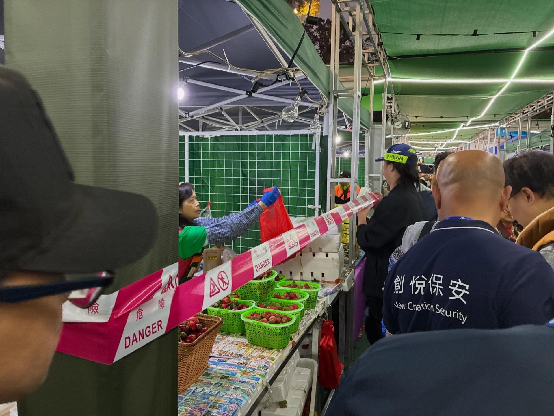 本地漁農美食嘉年華,網民表示有標榜售賣「本地士多啤梨」的攤檔被圍封(Threads)