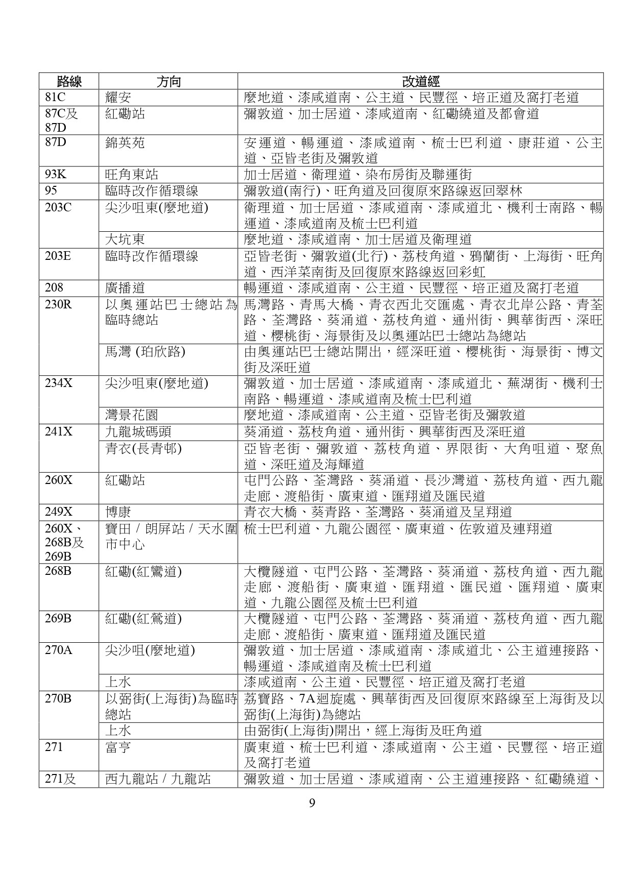 影響近270巴士線及40專線小巴線
