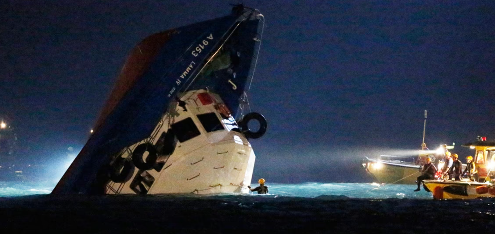 2012年國慶日,載有逾百名乘客的「南丫四號」客船被港九小輪「海泰號」撞擊,最終造成39人死亡 (美聯社/資料圖片)