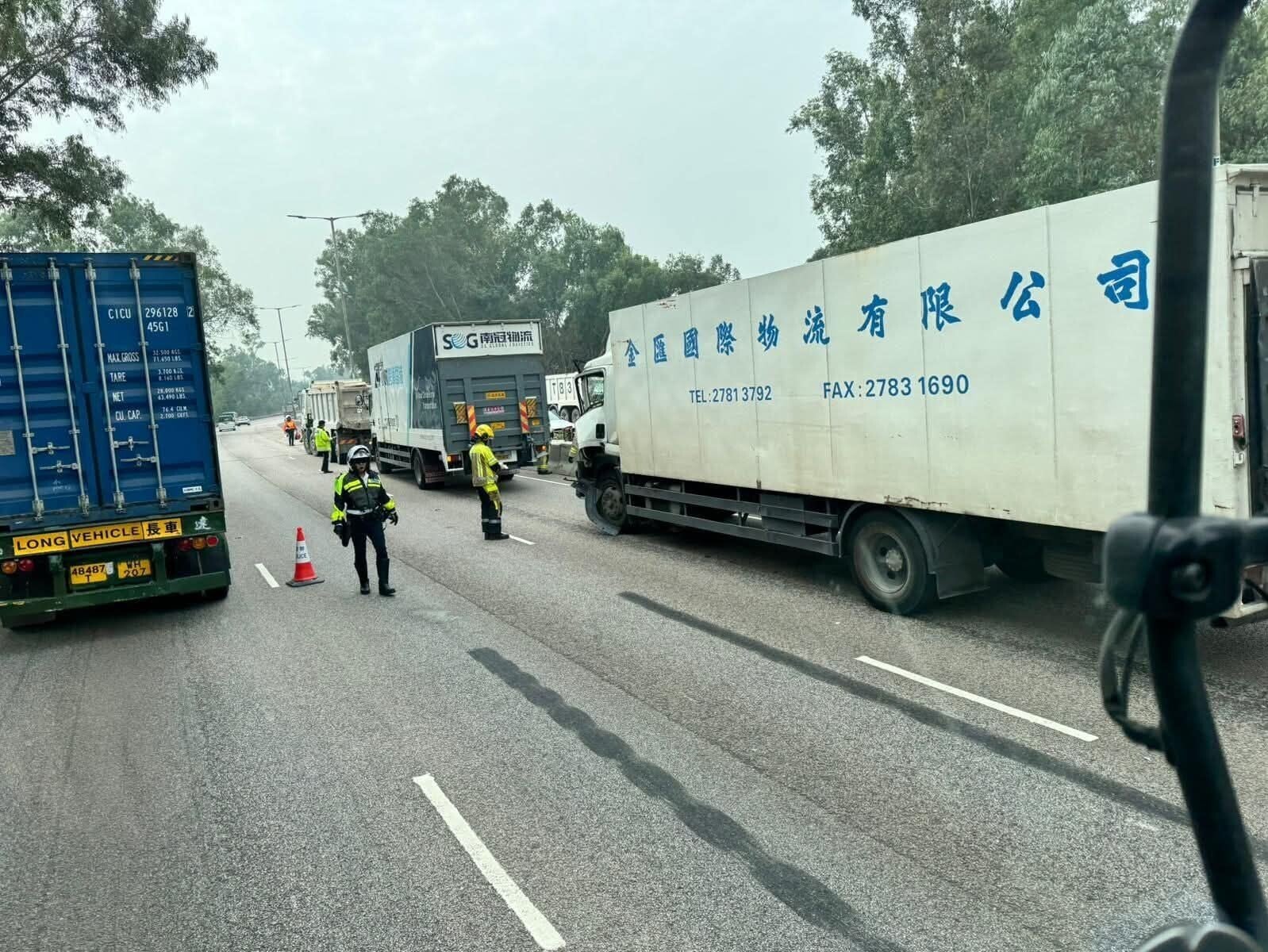 今日(27日)早上11時21分,新田公路往元朗方向有3輛車連環相撞,其中涉及一輛重型貨車,據了解,一名男乘客腳部被困車廂。警方和救援人員接報後趕至現場,將男乘客救出,清醒由救護車送院治理。警方正在調查意外原因。