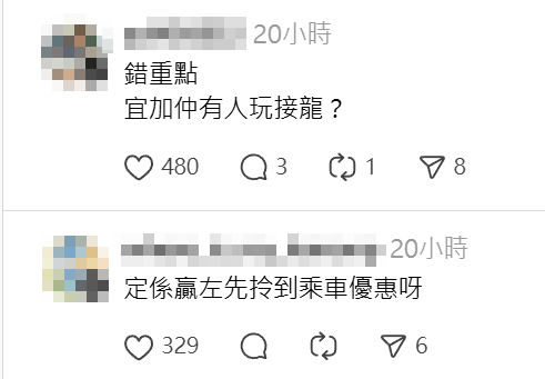 帖文引發網民熱議,有人笑稱問是否需要通關「打爆機」才能獲MTR分,「定係贏咗先拎到乘車優惠呀」、「玩接龍,玩贏咗有MTR分」、「係咪玩贏,獎金直接入落八達通?」、「會唔會係win左有獎double point?」,另有網民稱「錯重點,宜加仲有人玩接龍?」、「大佬好out」、「佢等緊你完成埋佢」、「太子玩接龍笑死」、「邊度有得玩?我想去挑機喎」。有人懷疑是否有職員「蛇王」,「忙裏偷閒」、「職員在打機」、「比你發現,呢個站個位工作人員炒得了」、「究竟有幾悶先至要玩接龍」。有網民則稱曾於「數碼服務站」屏幕運行其他程式,「我開Excel之類」。