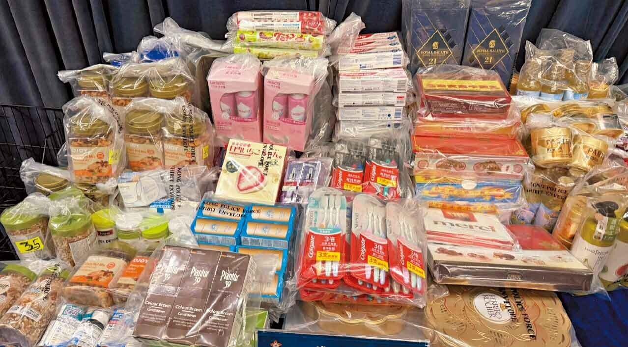 行動中,檢獲懷疑贓物包括大量同款衣物(部分仍貼有價錢牌)、個人護理用品、貴價酒、食材及保健產品;亦起出賊人犯案時所穿衣物、背囊、配有假髮的帽、存放贓物的手推車及大量現金。