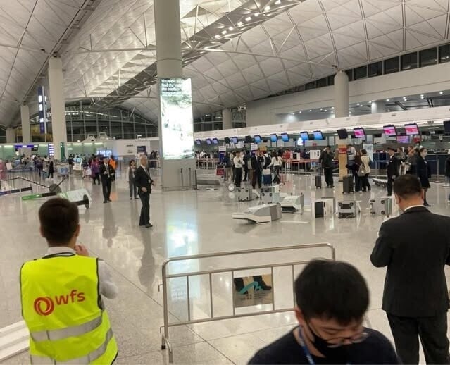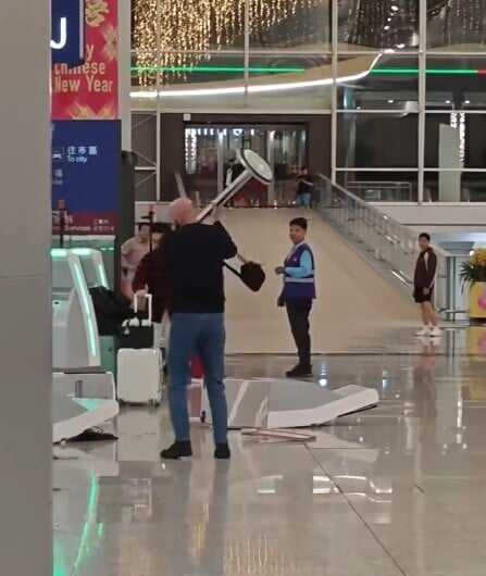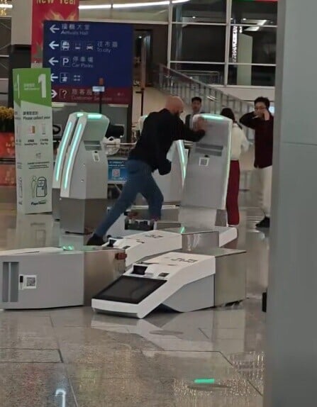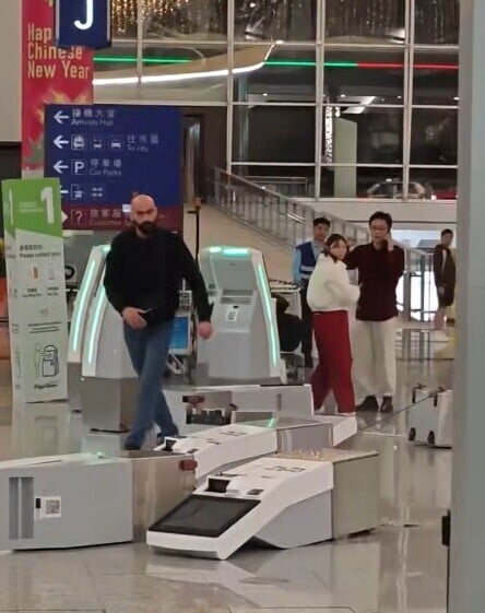 網上平台流傳一段影片顯示,今日(16日)清晨近6時,一名光頭留有鬍子外籍男子於香港國際機場離境大堂「J」出入口對開,大肆破壞。期間他推倒至少4台智能登記櫃檯,又拿起告示牌柱,最少兩次擊向被推倒在地上的櫃檯。現場所見,事發時附近的職員和旅客都不敢靠近,航空公司職員及機管局職員見狀報警。