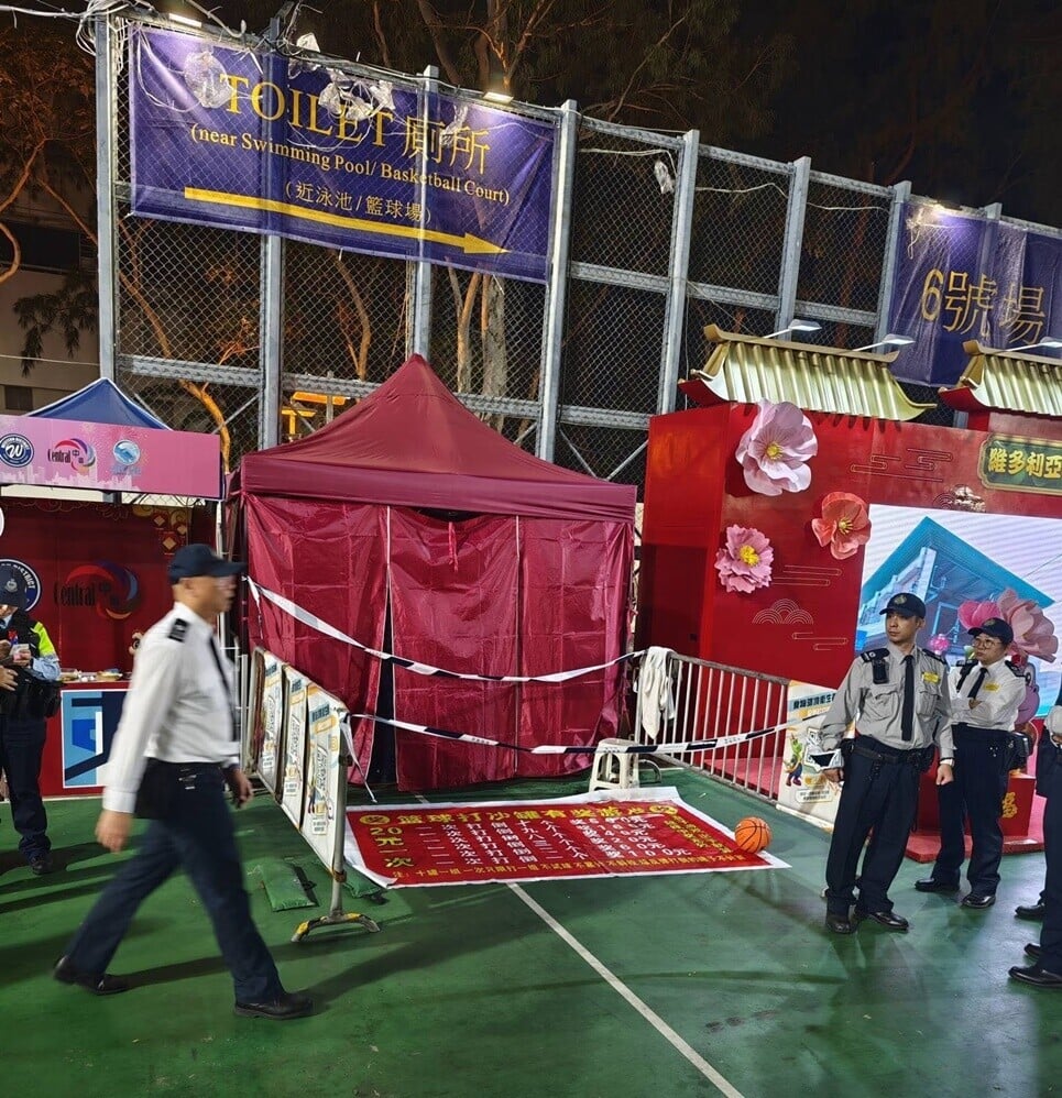 網上相片可見維園年宵一個檔攤被食環署以鐵欄及封條圍封,檔攤被遮蓋,地面遺下一個籃球、膠凳和一幅寫上「籃球打沙罐有獎遊戲」的橫額,每一次玩樂費用為20元,上面更列出打倒沙罐相應所獲的金額。警方指經調查,數名內地旅客在一空置攤檔玩卡牌,不涉賭博及刑事成份,案件列作「誤會」。