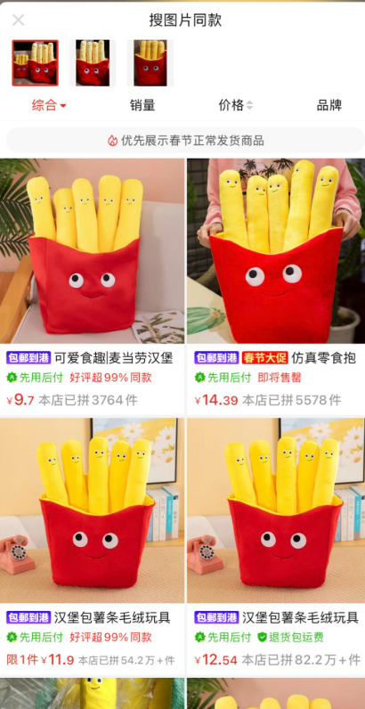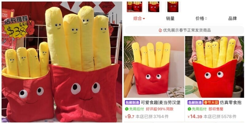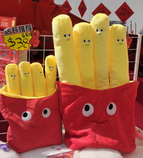 有網民於維園其中一間位於港島東區中學的擺檔買了兩件薯條公仔,埋單120元,惟有其他網民指其中一款78元的巨型薯條公仔,相同設計於淘寶只售9元人仔(網上圖片)